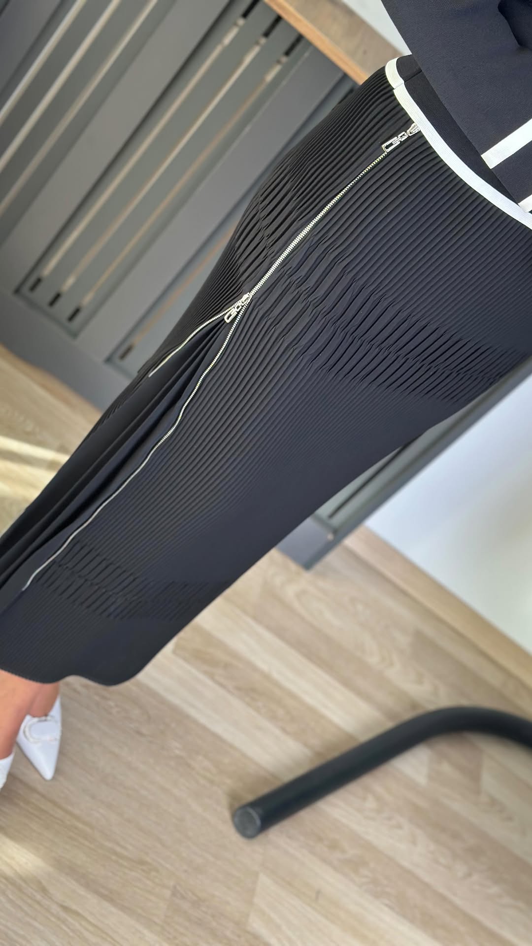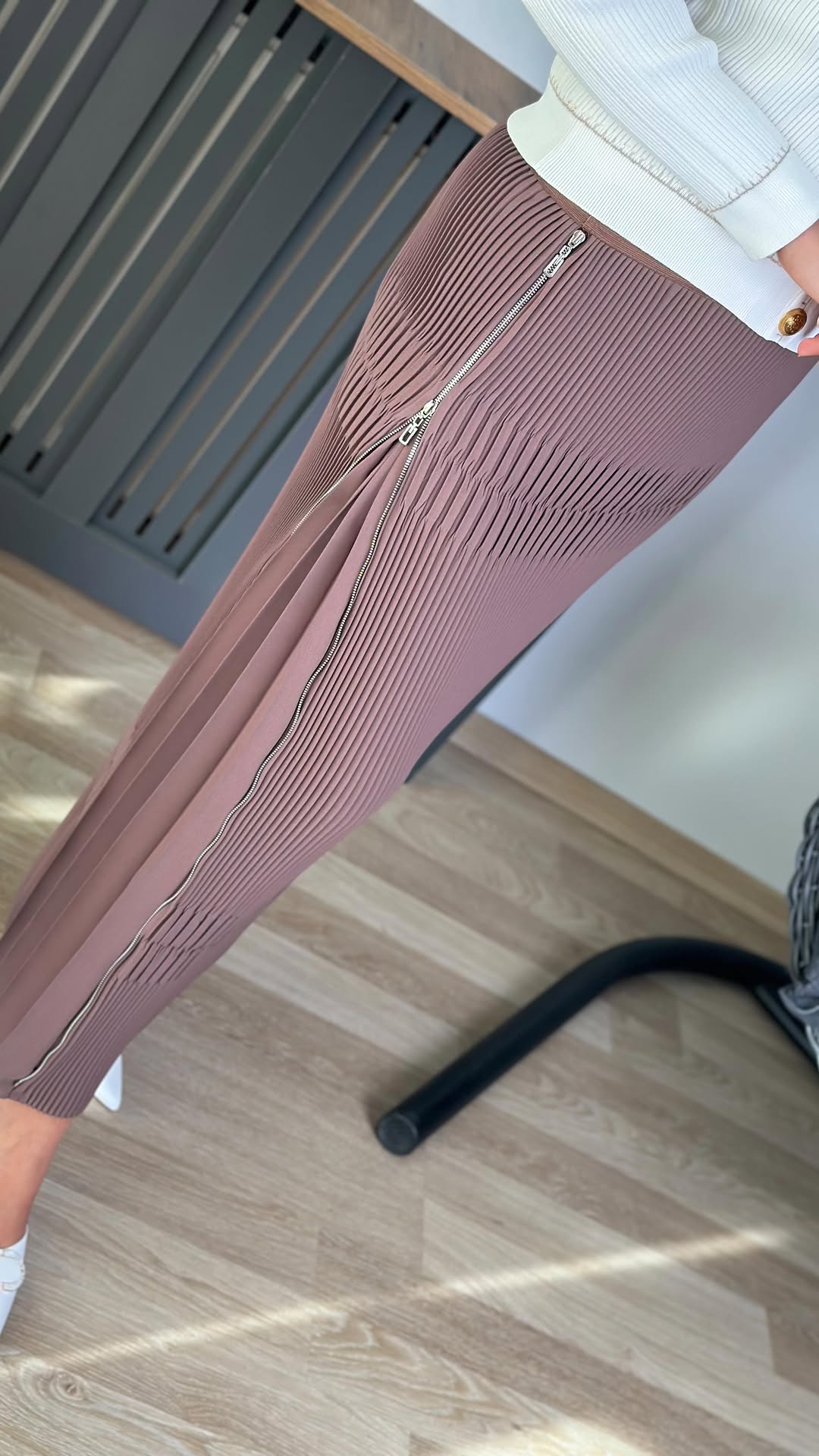 Akordiyon Kumaş Körüklü Etek – Kahve / Lacivert / Siyah Renkleri ve 40/42/44/46 Bedenleri mevcuttur. 95cm Boy Uzunluğu vardır.