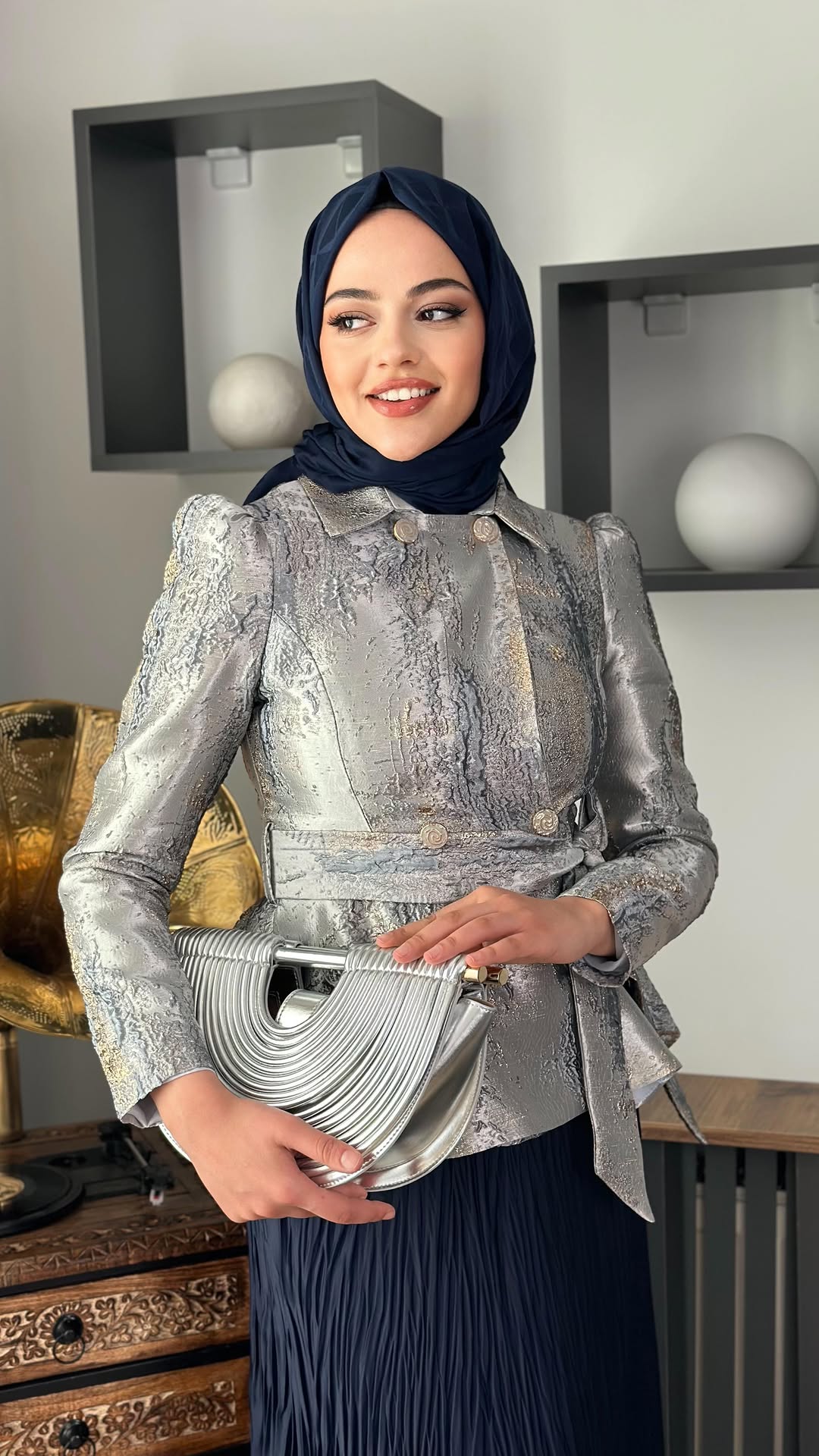 Brokar Kumaş Ceket – Mavi / Kahve Renkleri ve 1 Beden(38), 2 Beden(40), 3 Beden(42), 4 Beden(44) Bedenleri mevcuttur. 65cm Boy uzunluğu vardır.