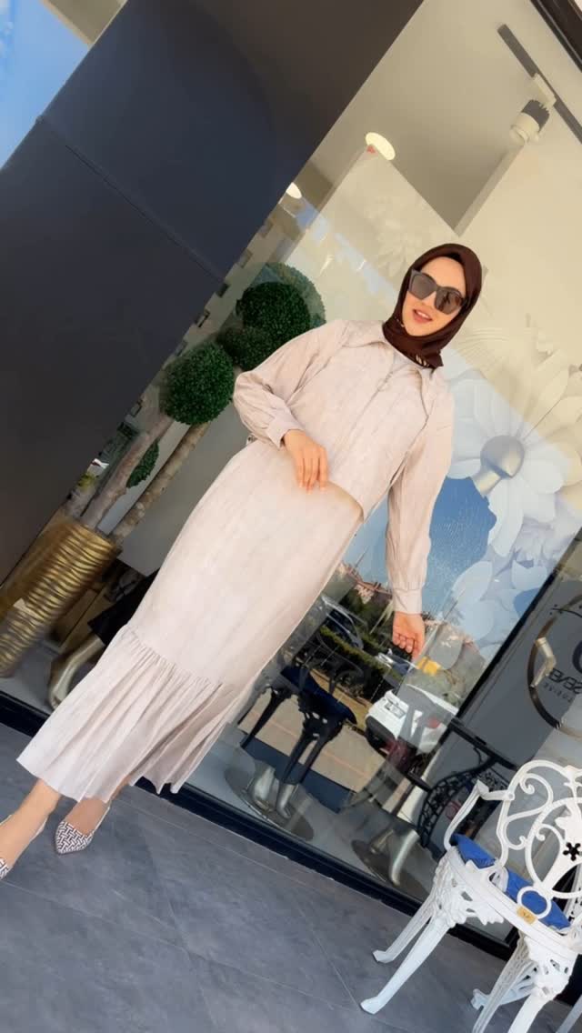 Çilek Kumaş Elbise Krem, S (38) / M (40) / L (42) Bedenleri mevcuttur, 135cm Boy Uzunluğu vardır.