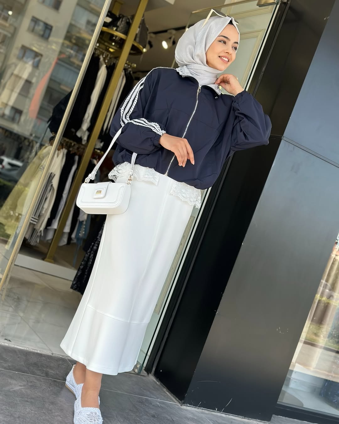 Dantel Detaylı Ceket Lacivert, Standart Beden olup, 36/38/40/42 Bedenlere uyumludur. 60cm Boy uzunluğu vardır.