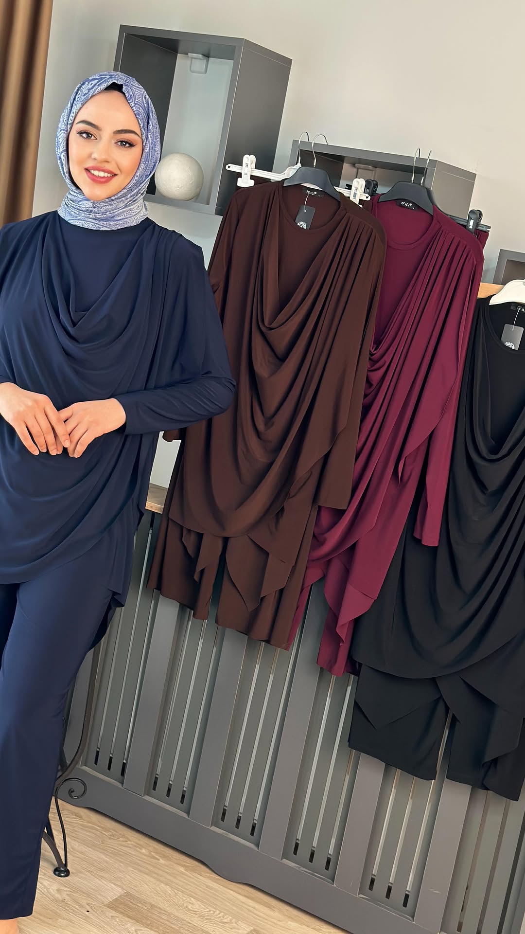 Degaje Yaka Makas Tunik Sandy Kumaş Takım – Mavi / Kahve / Bordo / Siyah Renkleri ve 1 Beden(38-40), 2 Beden(42-44) Bedenleri mevcuttur.