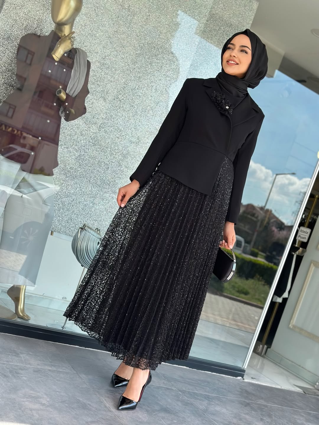 Güpür Payetli Elbise Siyah, 1 Beden(38), 2 Beden(40), 3 Beden(42), 4 Beden(44) Bedenleri mevcuttur. 140cm Boy Uzunluğu vardır.