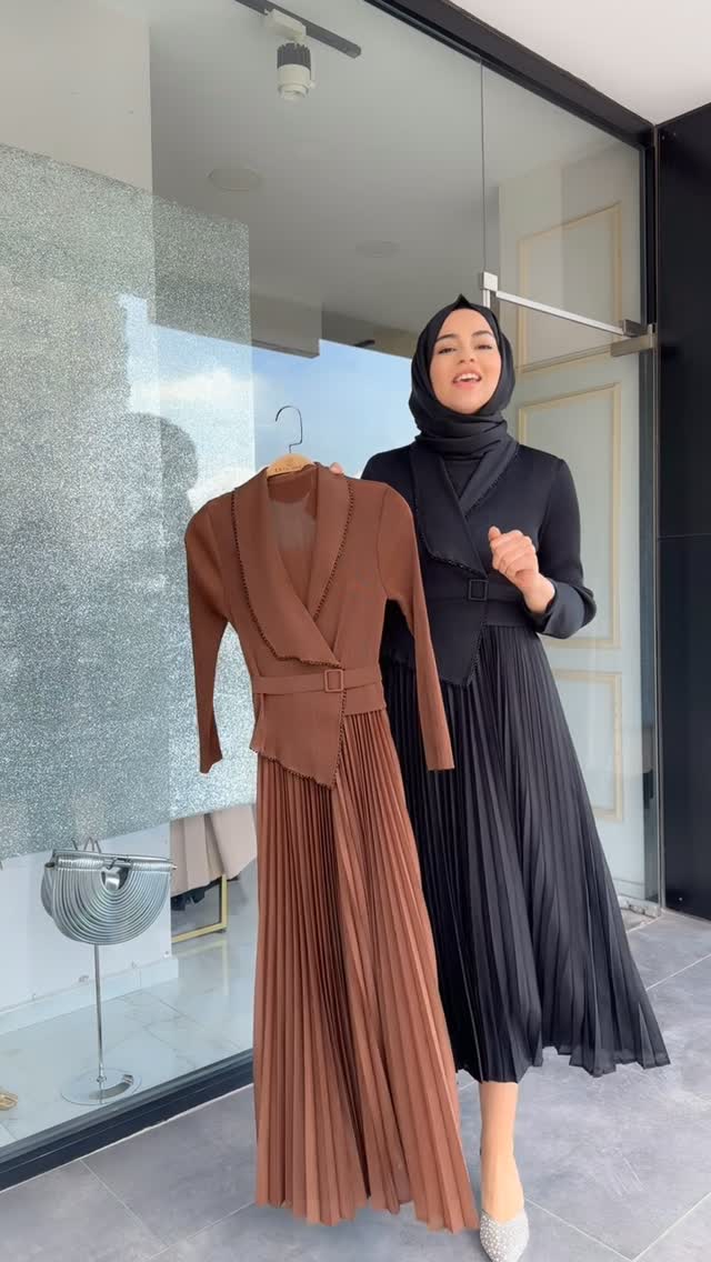 İthal Akordiyon Kumaş Elbise – Siyah / Taba Renkler, Standart Beden olup, 36/38/40/42/44 Bedenlere uyumludur. Ürün Yarım Astardır.