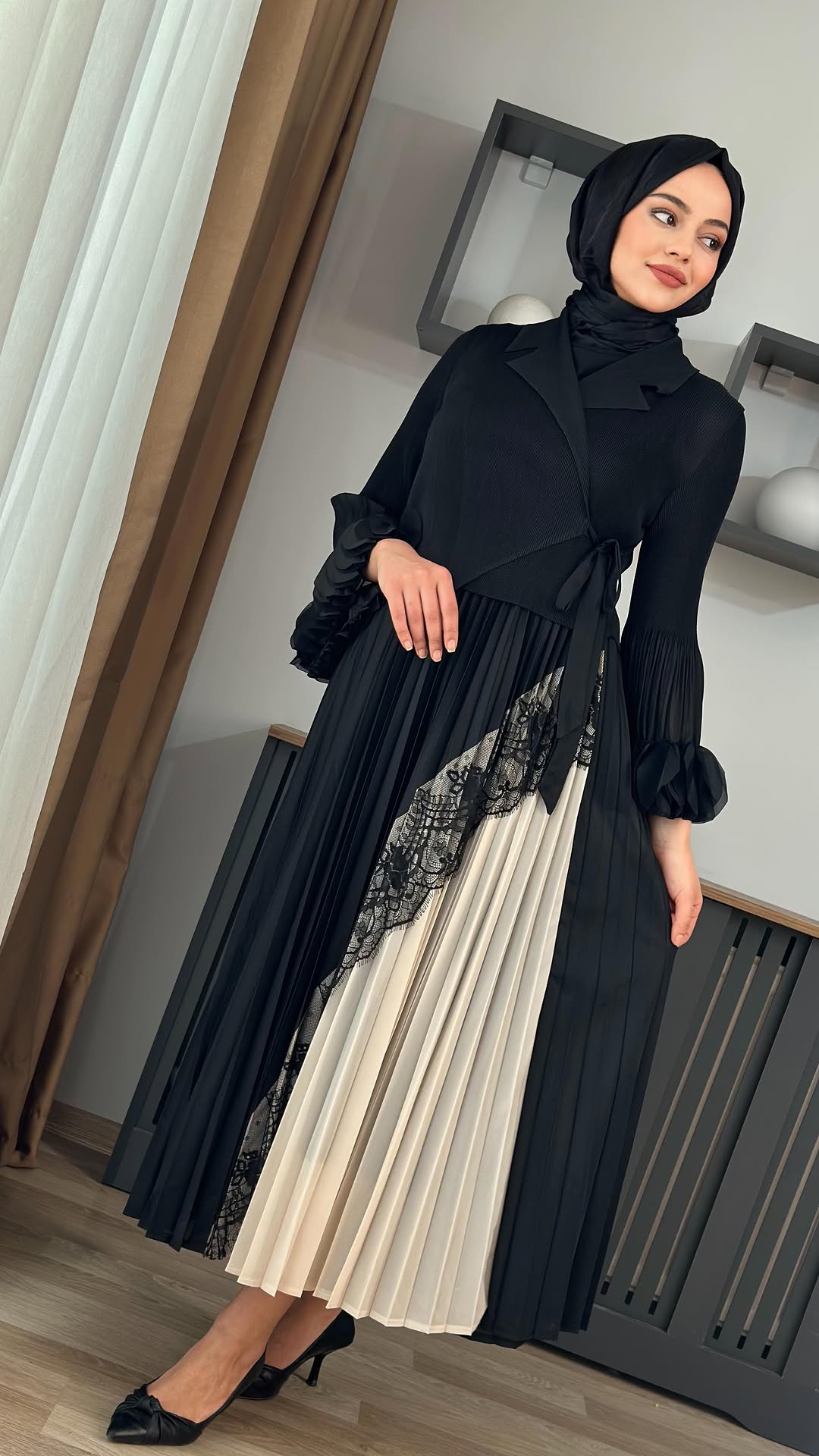 İthal Dantel Detaylı Elbise Siyah, Standart Beden olup, 38/40/42/44 Bedenlere uyumludur. 135cm Boy uzunluğu vardır.