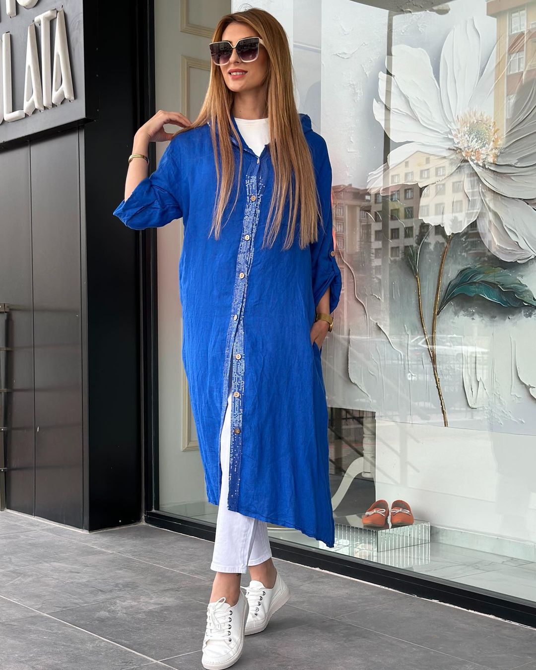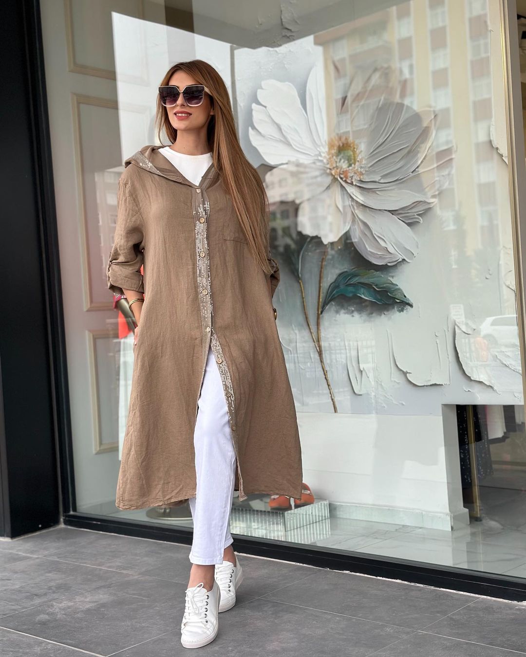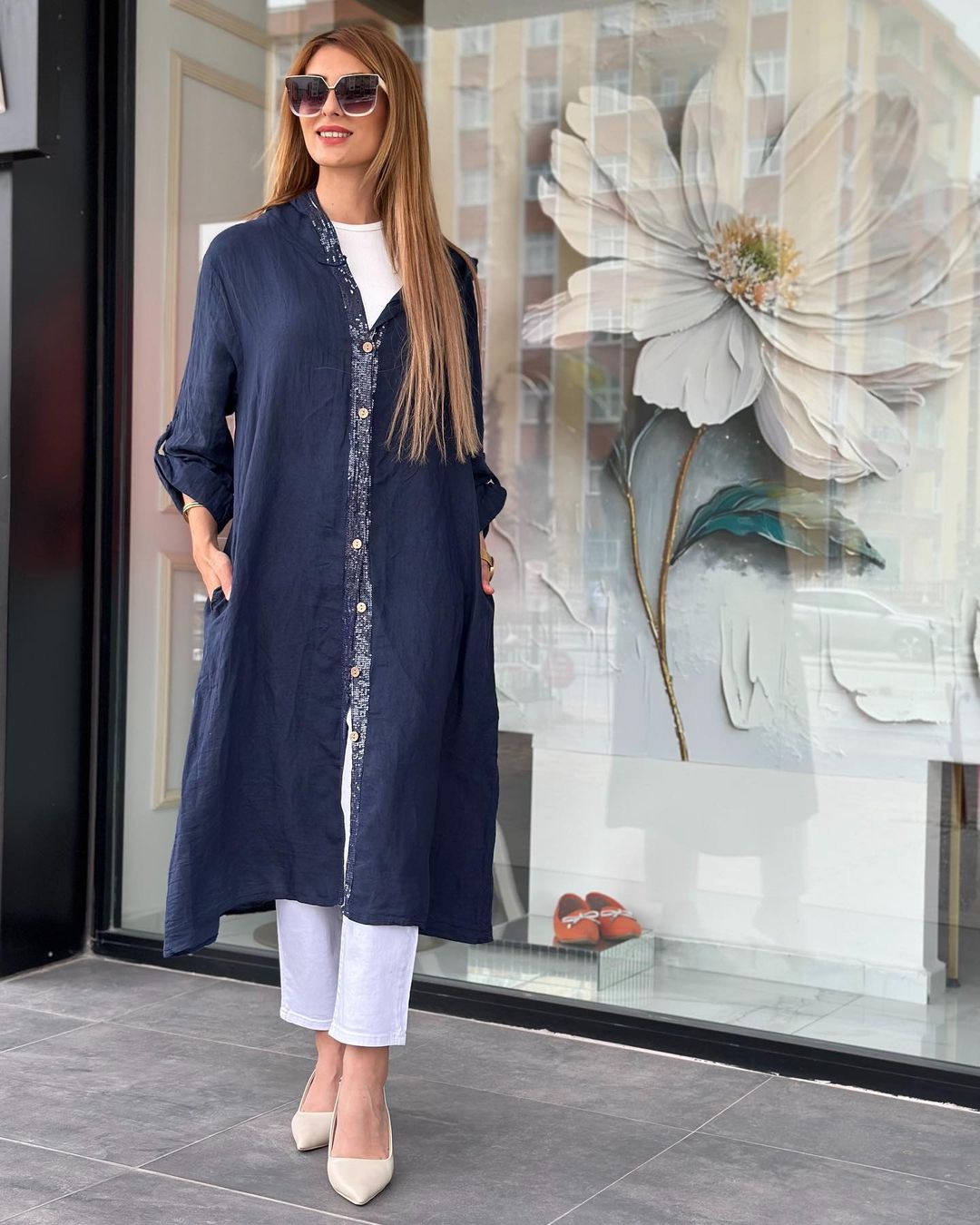 İthal Keten Giyçık Kap, Standart beden olup 38-46 beden aralığına uyumludur, 4 Rengi Mevcuttur, Boydan Düğmeli Payet Detaylı 112cm Boy Uzunluğu Vardır.