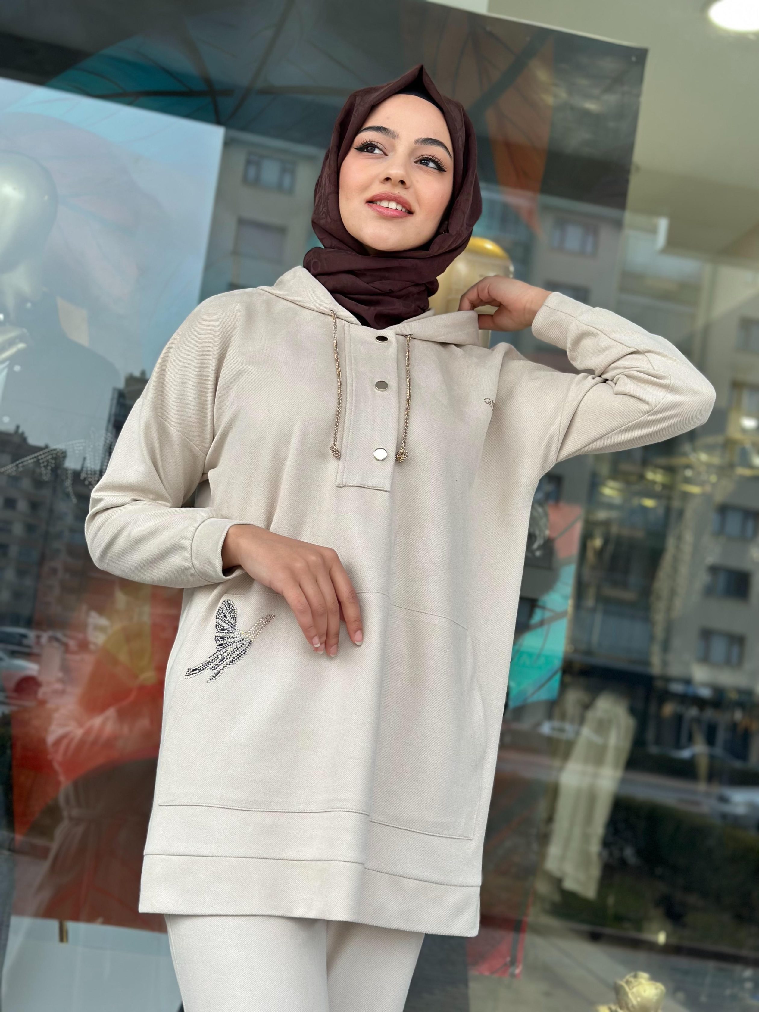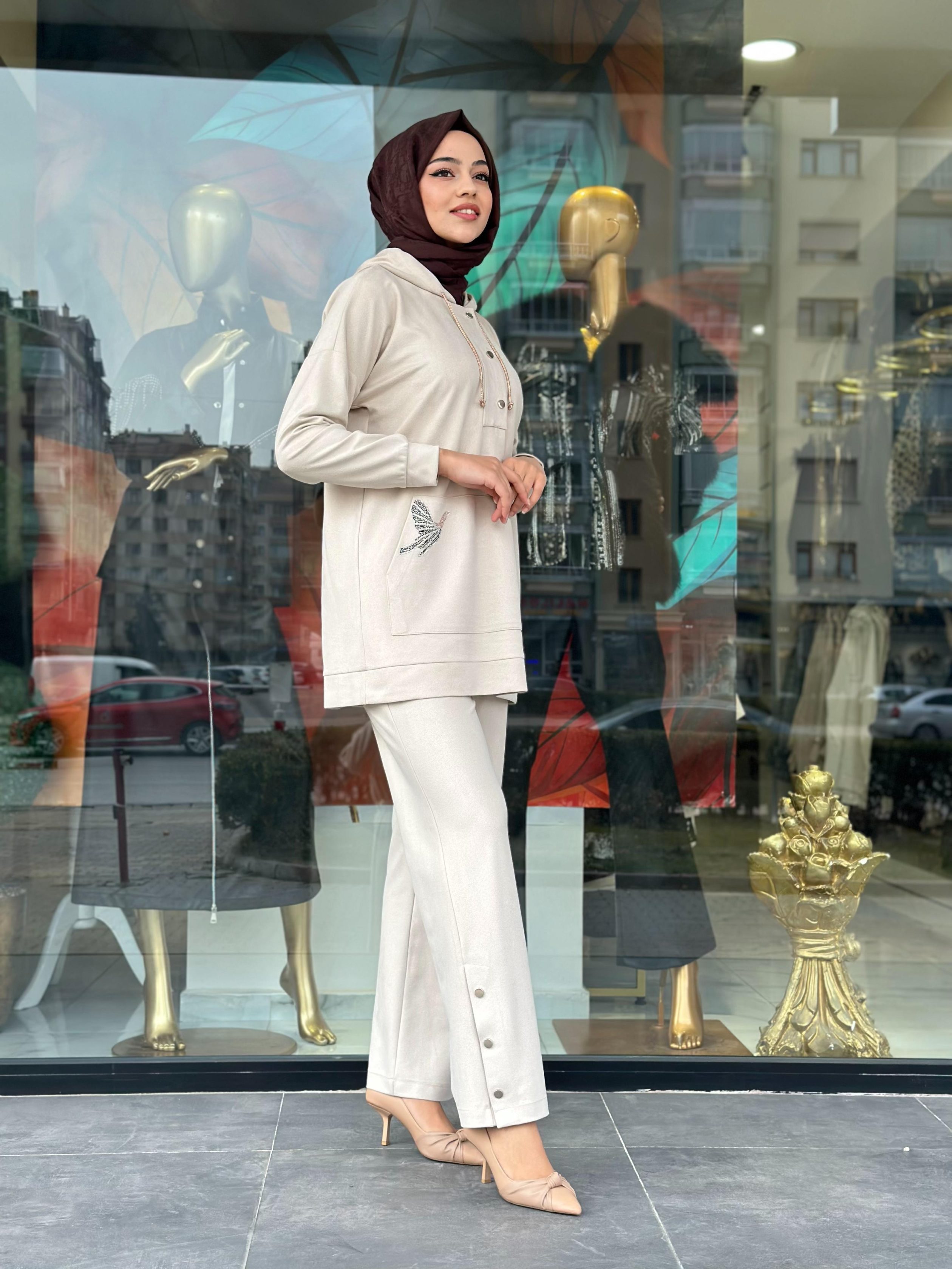 İthal Oysho Kumaş Zımbalı İkili Takım Bej / Kahve renkleri ve 1 Beden(38-40), 2 Beden(42-44) bedenleri mevcuttur. 80cm boy uzunluğu vardır. Pantolon Beli lastiklidir.