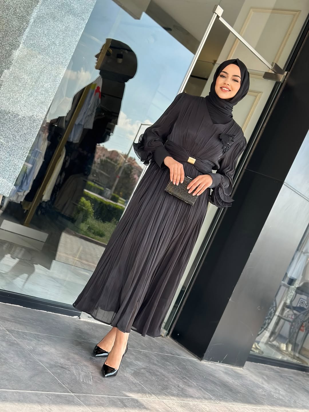 İthal Şifon Elbise Siyah, Standart Beden olup, 38/40/42 Bedenlere uyumludur. 140cm Boy uzunluğu vardır.
