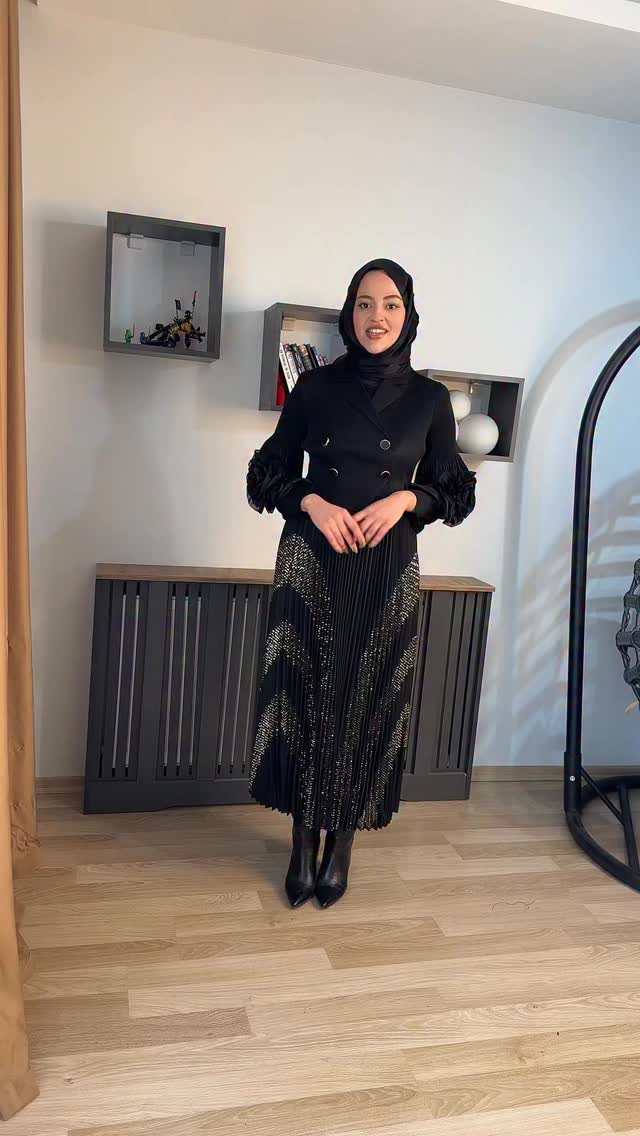 İthal Yarım Astar Gold Detaylı Elbise Siyah, Standart Beden olup, 38/40/42/44 Bedenlere uyumludur. 130cm Boy uzunluğu vardır.