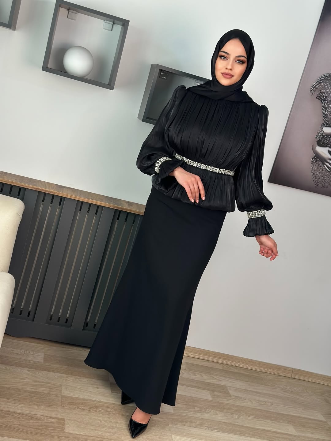 Şalvarlı Üçlü Takım Siyah