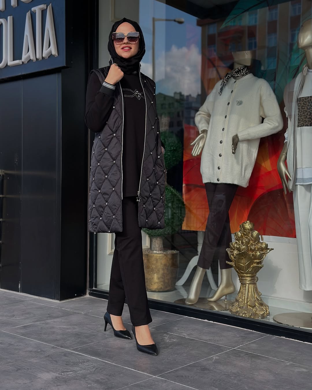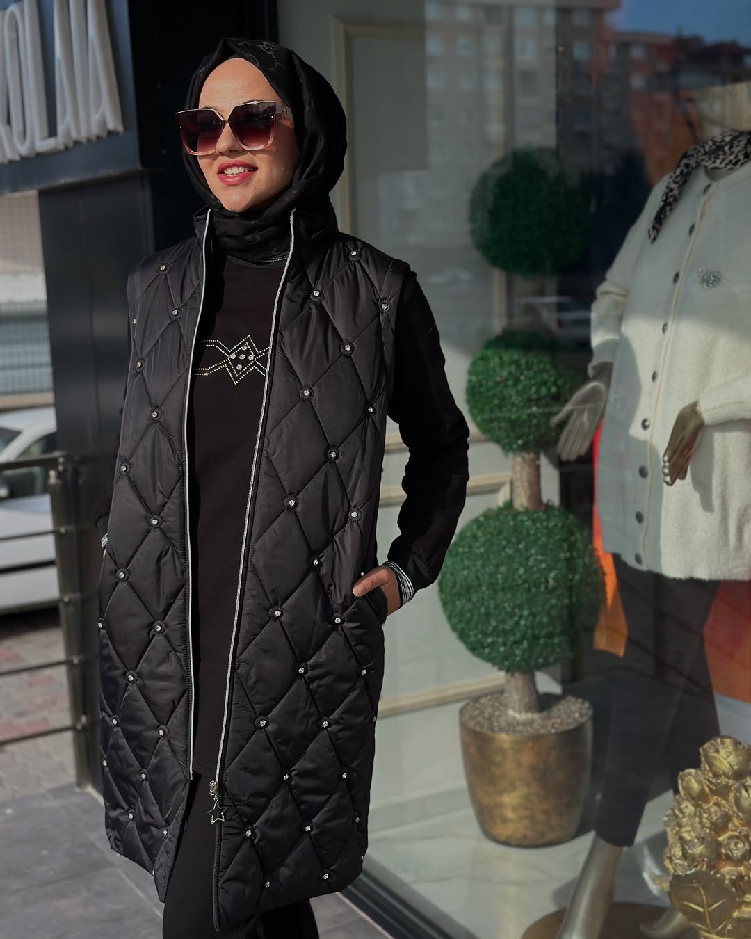 Kapitone Yelekli Üçlü Takım Siyah, 38/40/42/44/46/48 Bedenleri mevcuttur. 97cm troklu yelek boyu ve 80cm iç tunik boyu vardır. Pantolon beli lastiklidir.