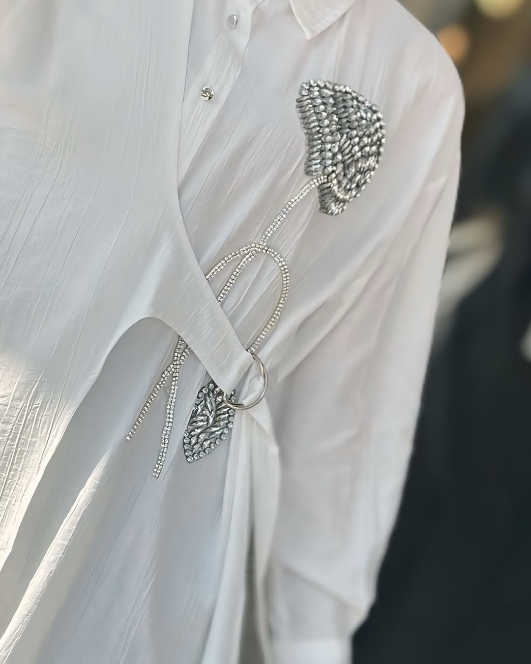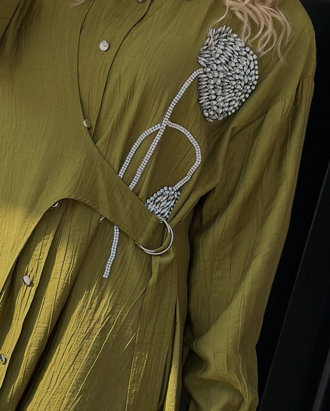Kemerli Çilek Kumaş Taşlı Gömlek – Yeşil / Beyaz / Siyah / Gri