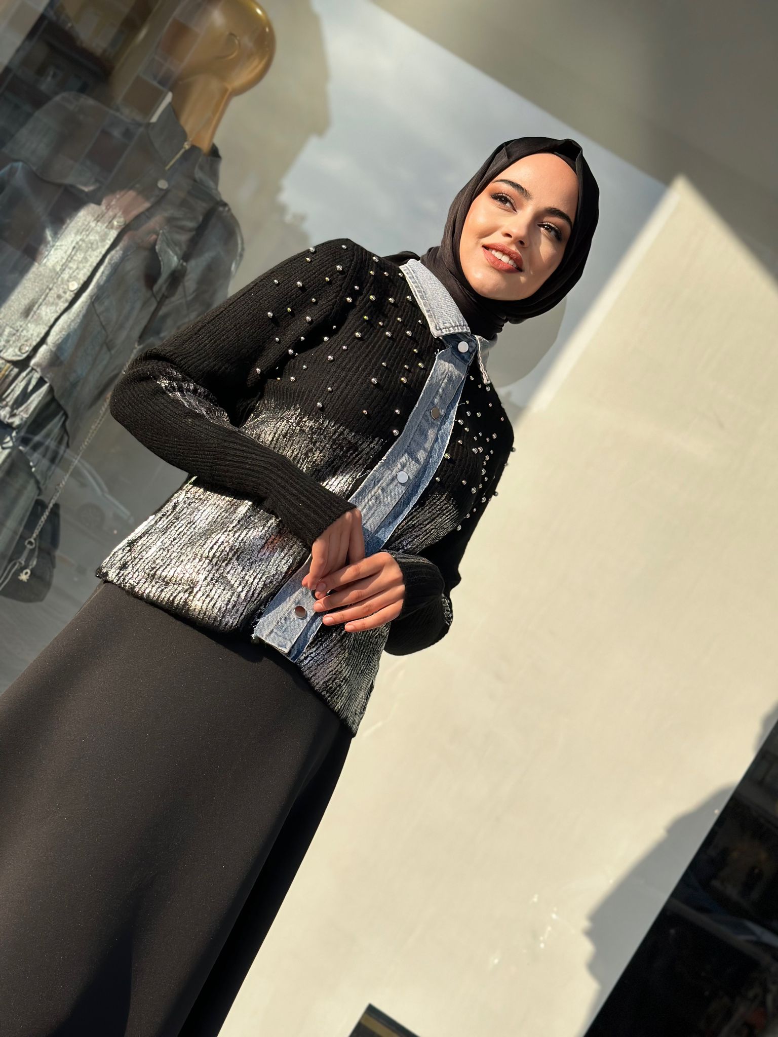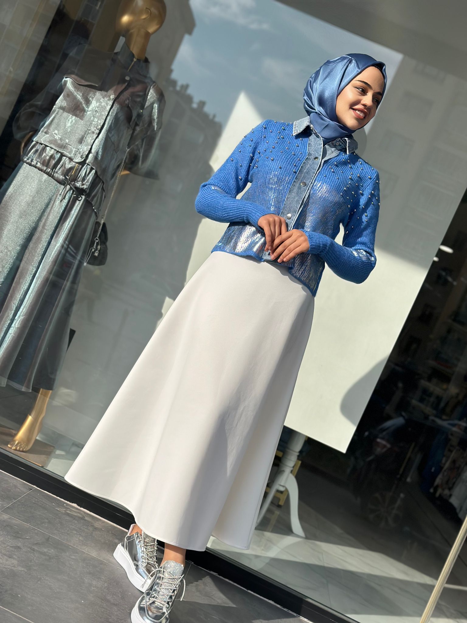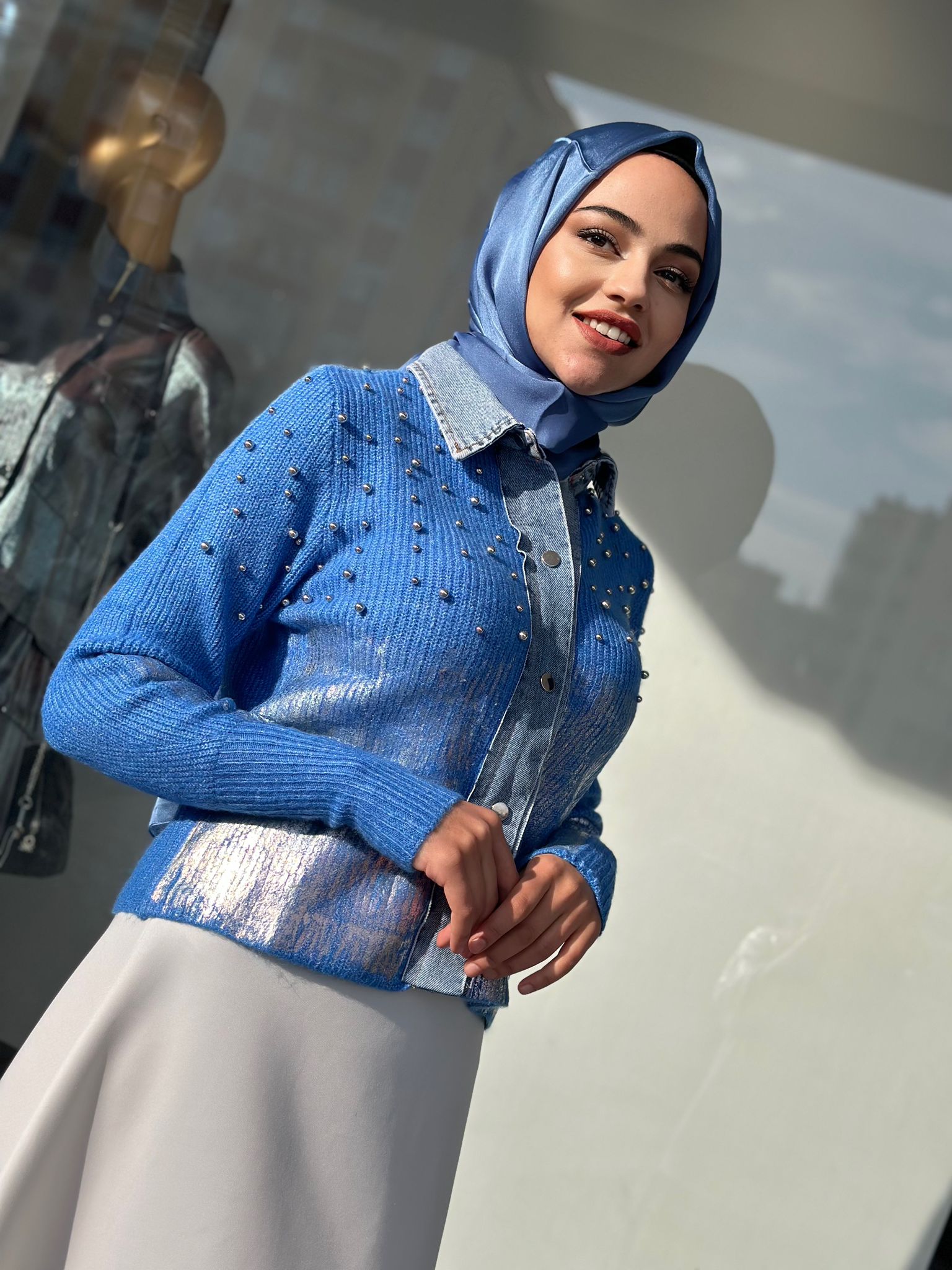 Kot Detaylı Triko Turuncu/Mavi/Siyah Renkleri mevcuttur, Standart Beden olup 36/38/40 uyumludur.