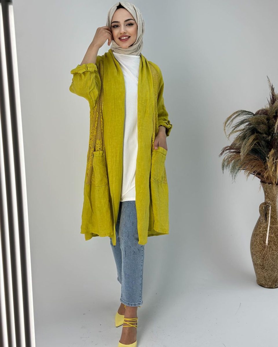 İthal Keten Dantelli Giy Çık Kap