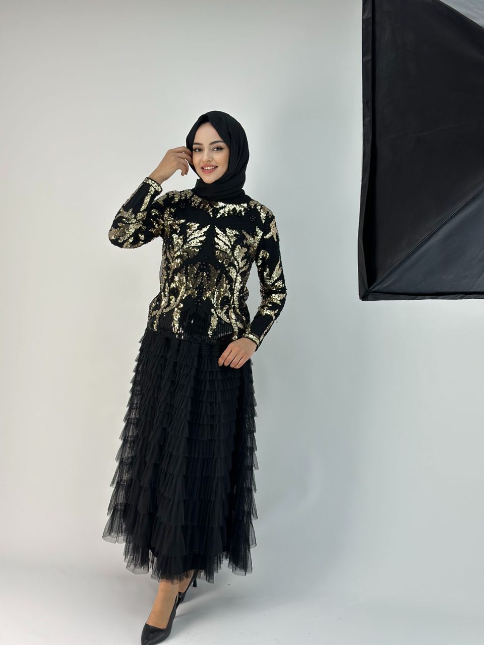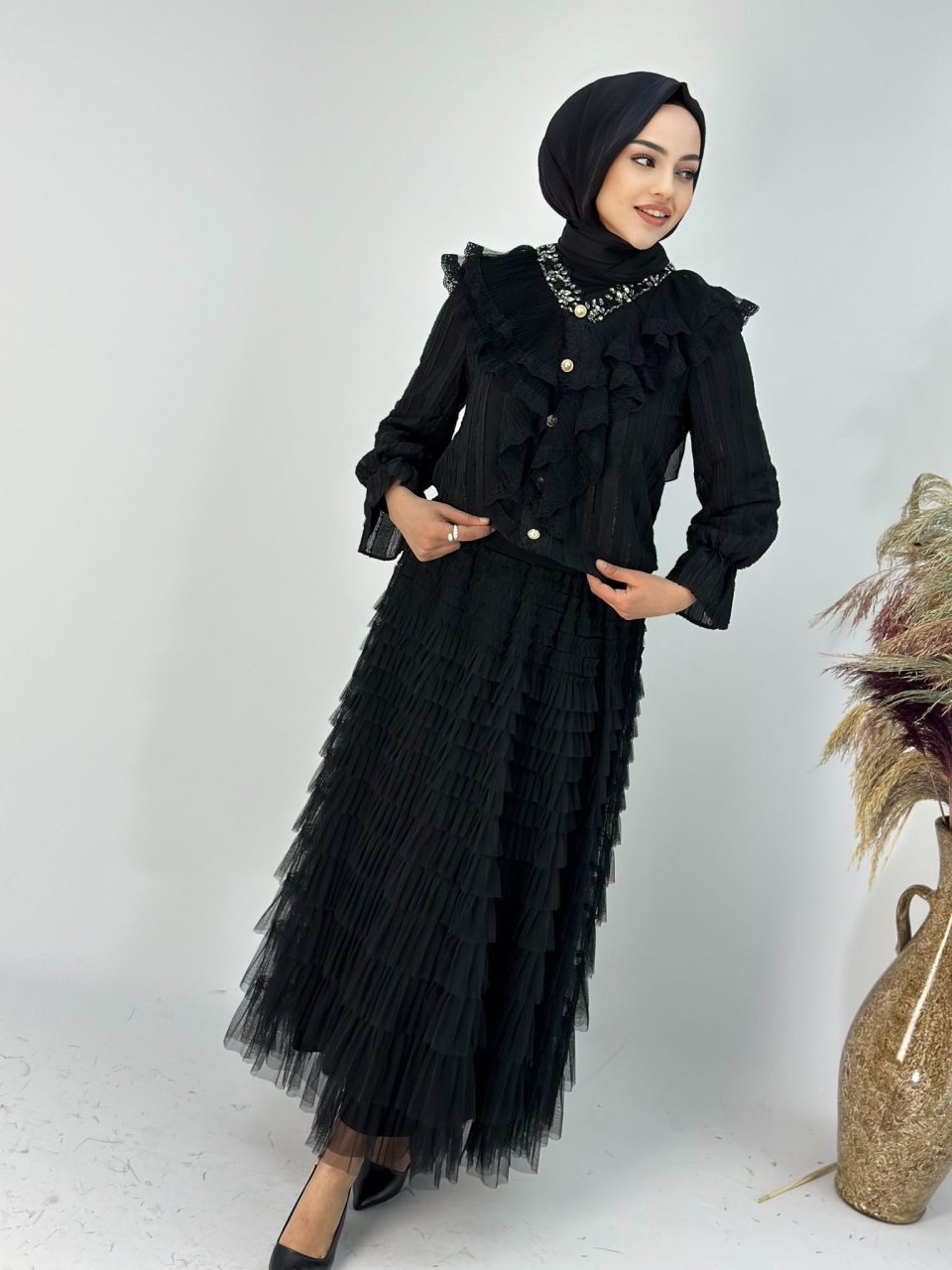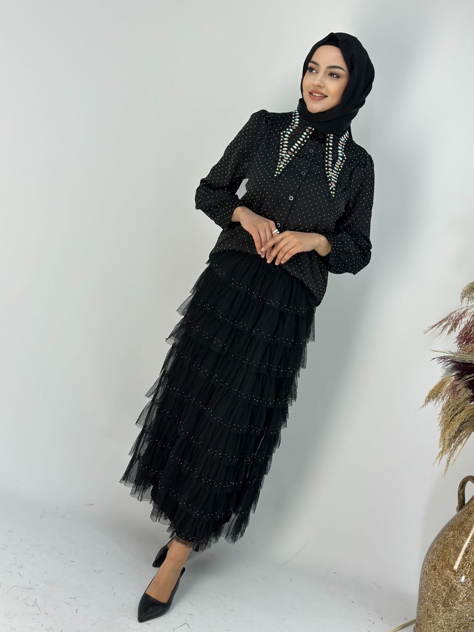 İthal Tütü Etek Siyah Taşlı