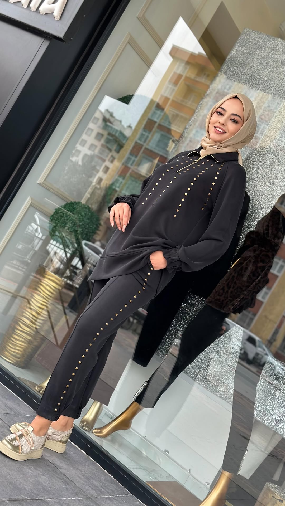 Modal Kumaş Zımbalı Takım, 1 Beden(38-40), 2 Beden(42), 3 Beden(44) Bedenleri mevcuttur. 85cm Tunik Boy uzunluğu vardır.