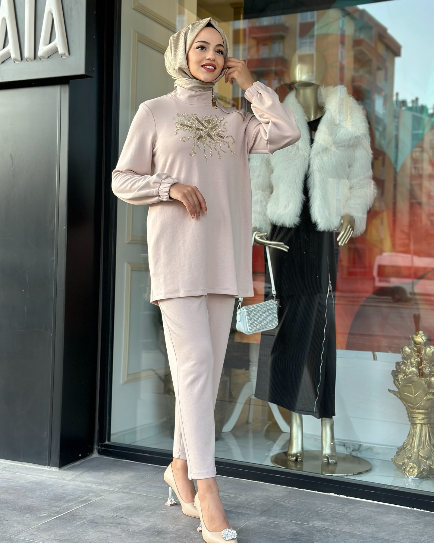 Oysho Kumaş İkili Takım İşlemeli, 1 Beden(38-40), 2 Beden(42-44) bedenleri mevcuttur. 85cm tunik boy uzunluğu vardır.