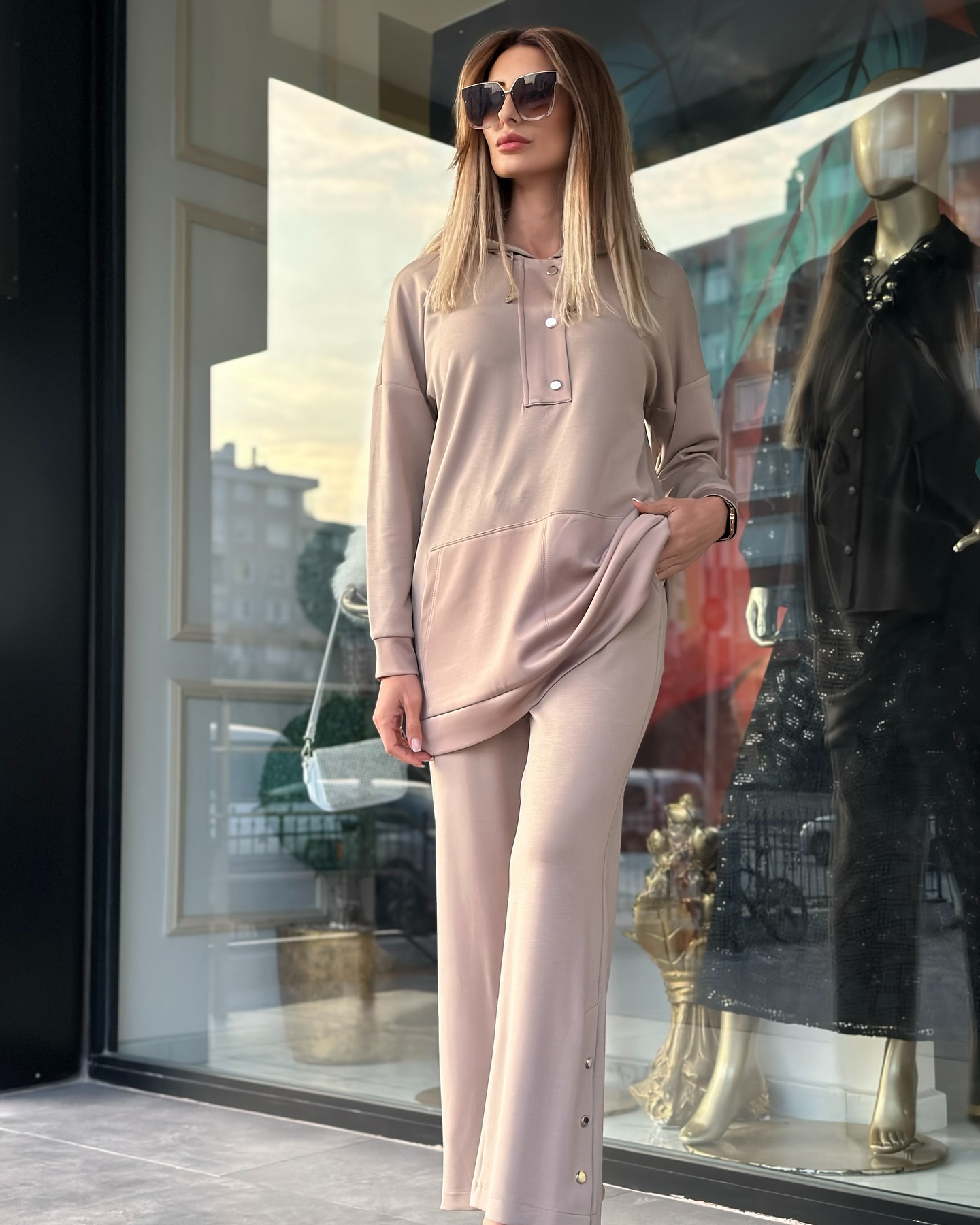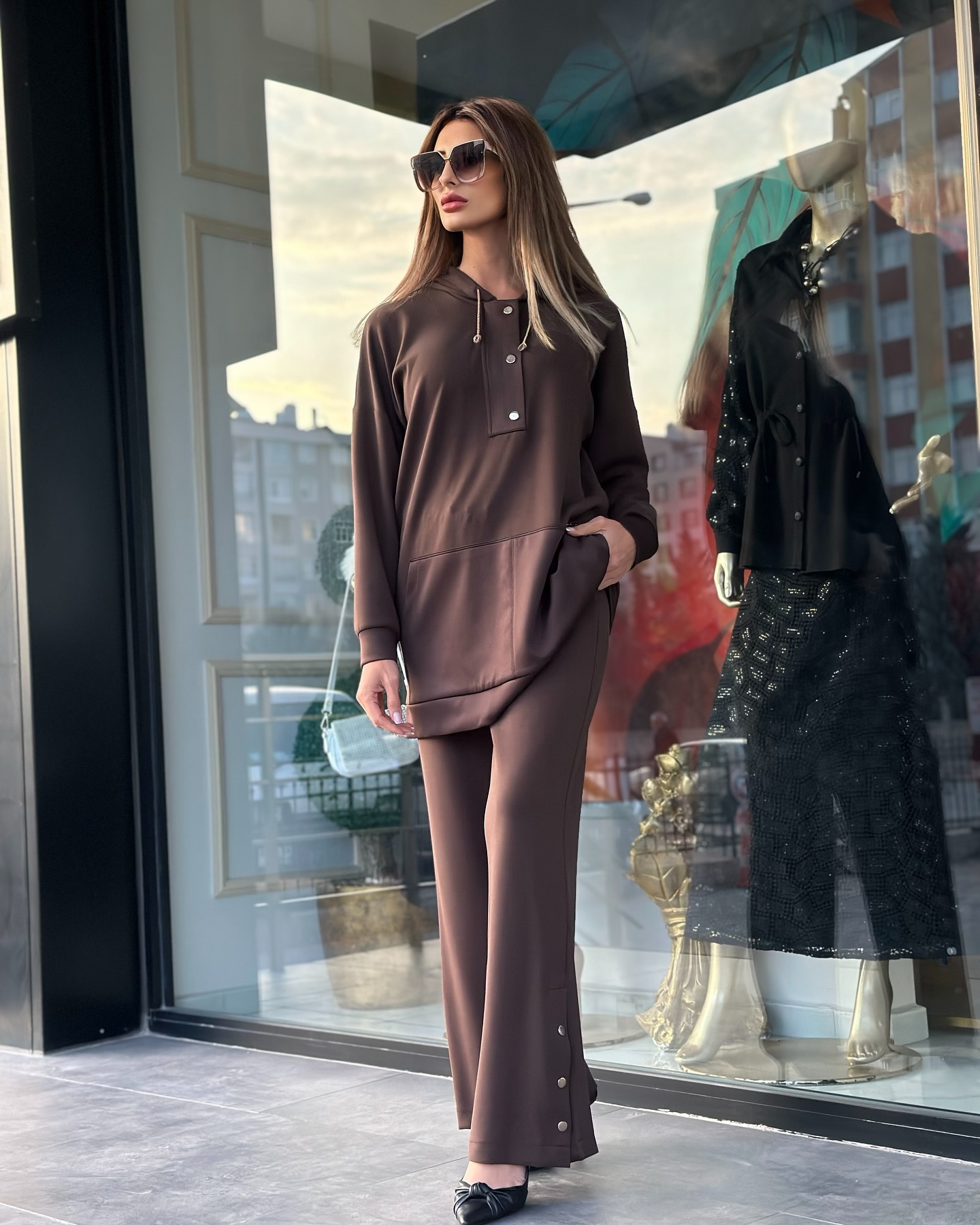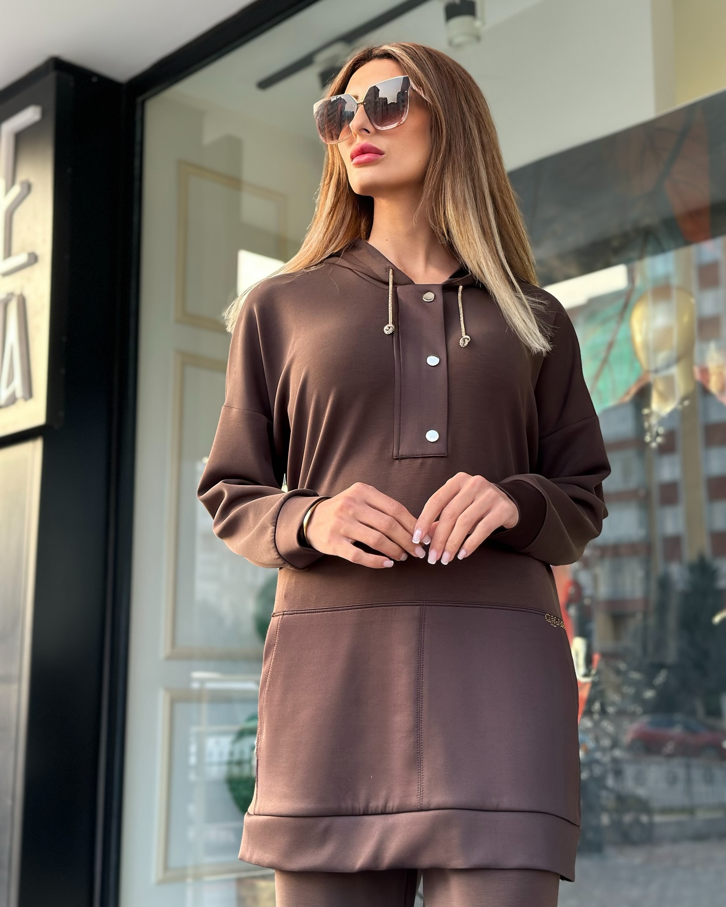 Oysho Kumaş İkili Takım Krem / Kahve / Siyah renkleri ve 1 Beden(38-40-42), 2 Beden(44-46) bedenleri mevcuttur. 80cm tunik boy uzunluğu vardır.
