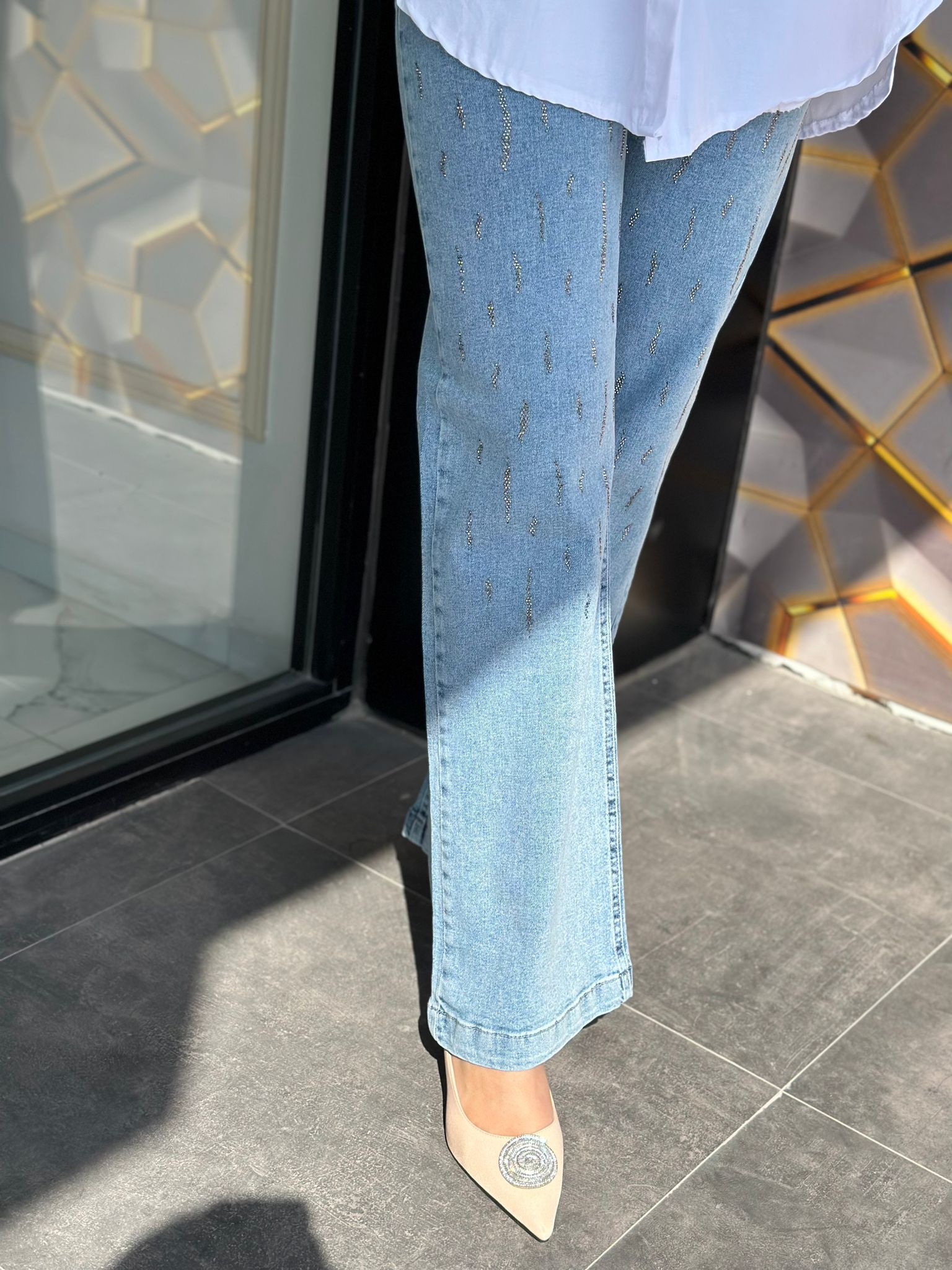 Palazzo Taşlı Pantolon Jean, 29/30/31/32/33/34/36 Bedenleri Mevcuttur.
