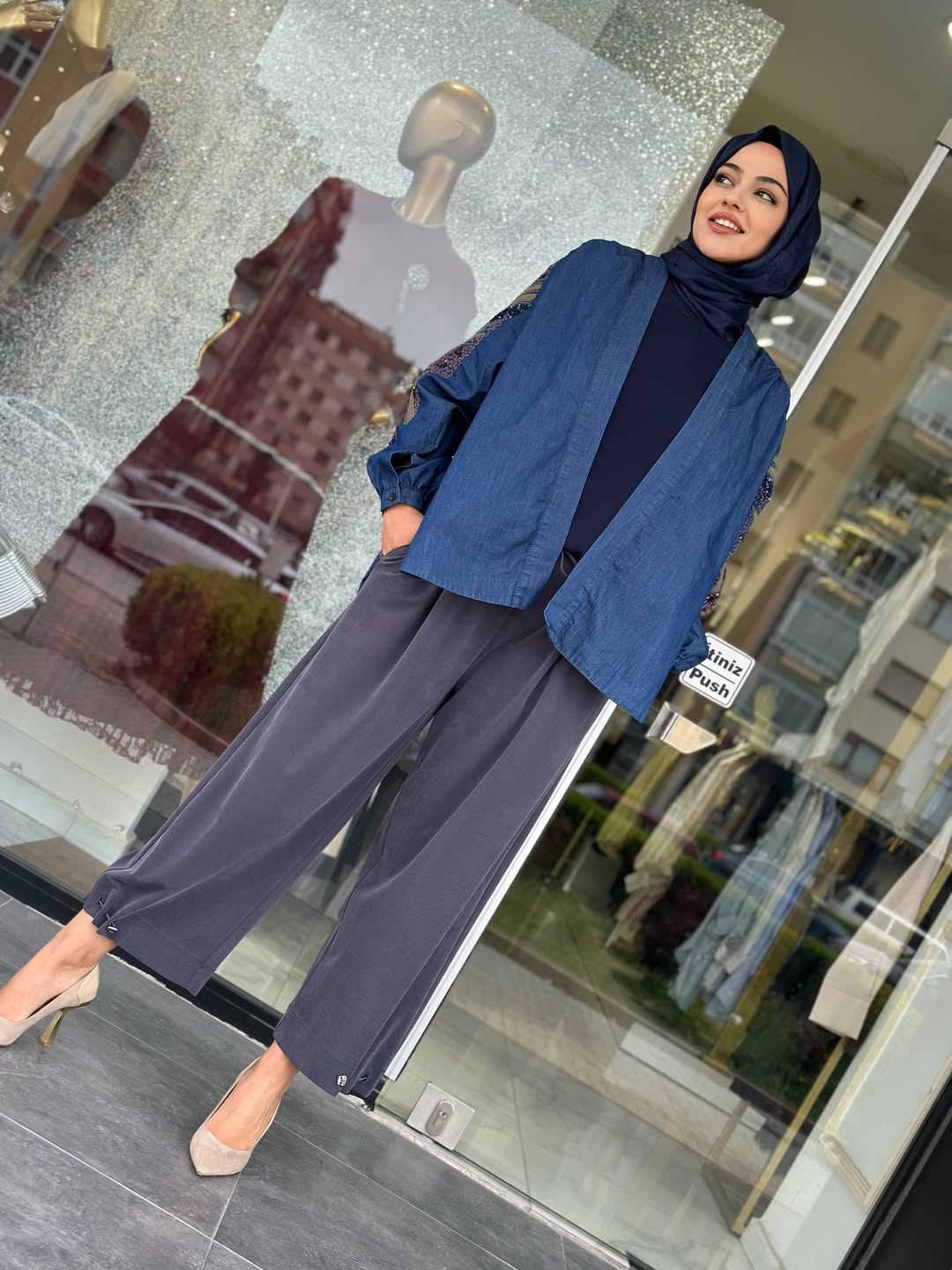 Payet İşlemeli Tensel Kot Kimono, Standart Beden olup, 38/40/42/44/46 Bedenlere uyumludur. Ön Uzunluk 70cm, Arka Uzunluk 75cm‘dir.