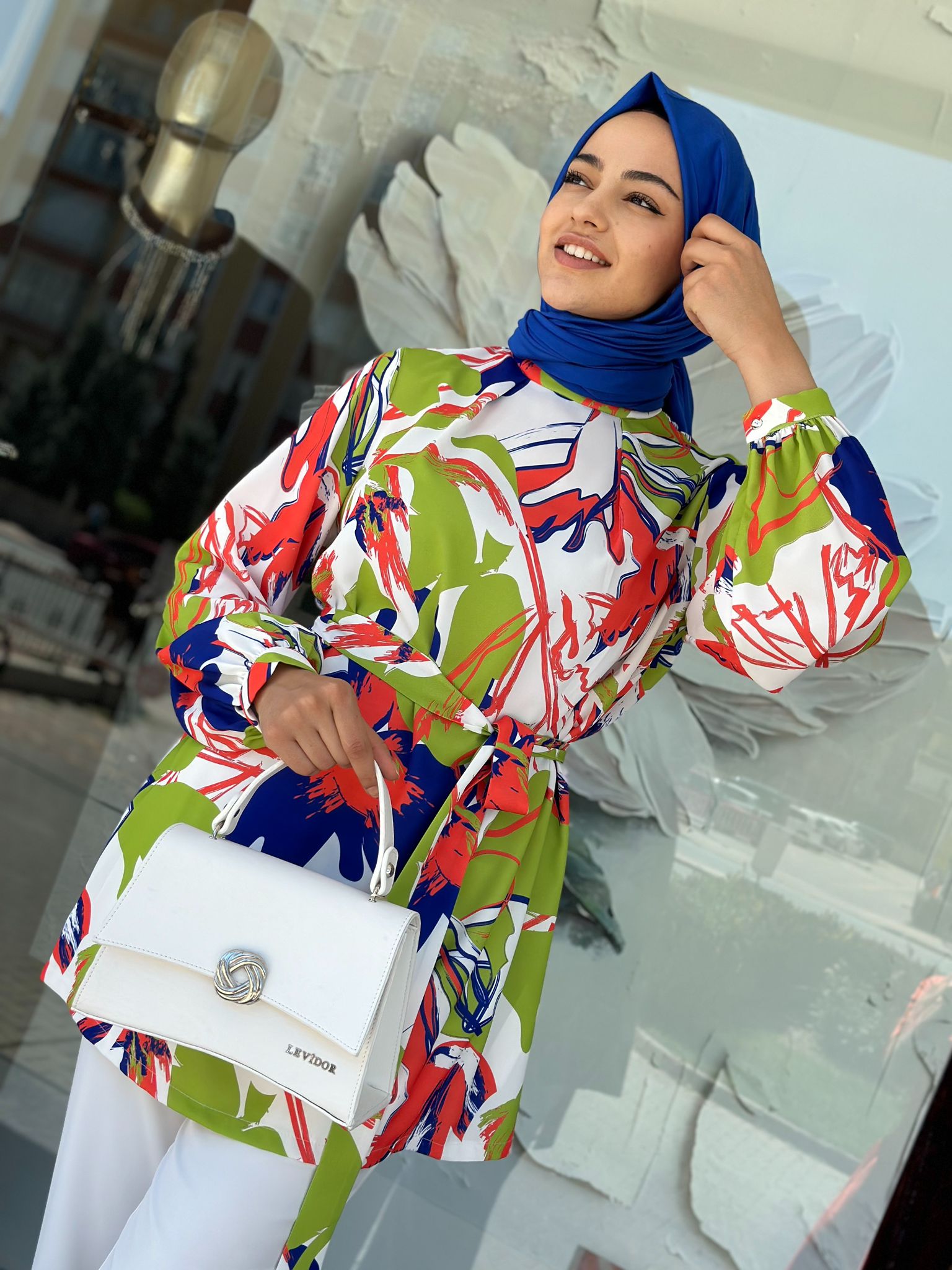 Renkli Şifon İkili Takım, 38/40/42/44 Bedenleri mevcuttur. Pantolon astarlıdır.