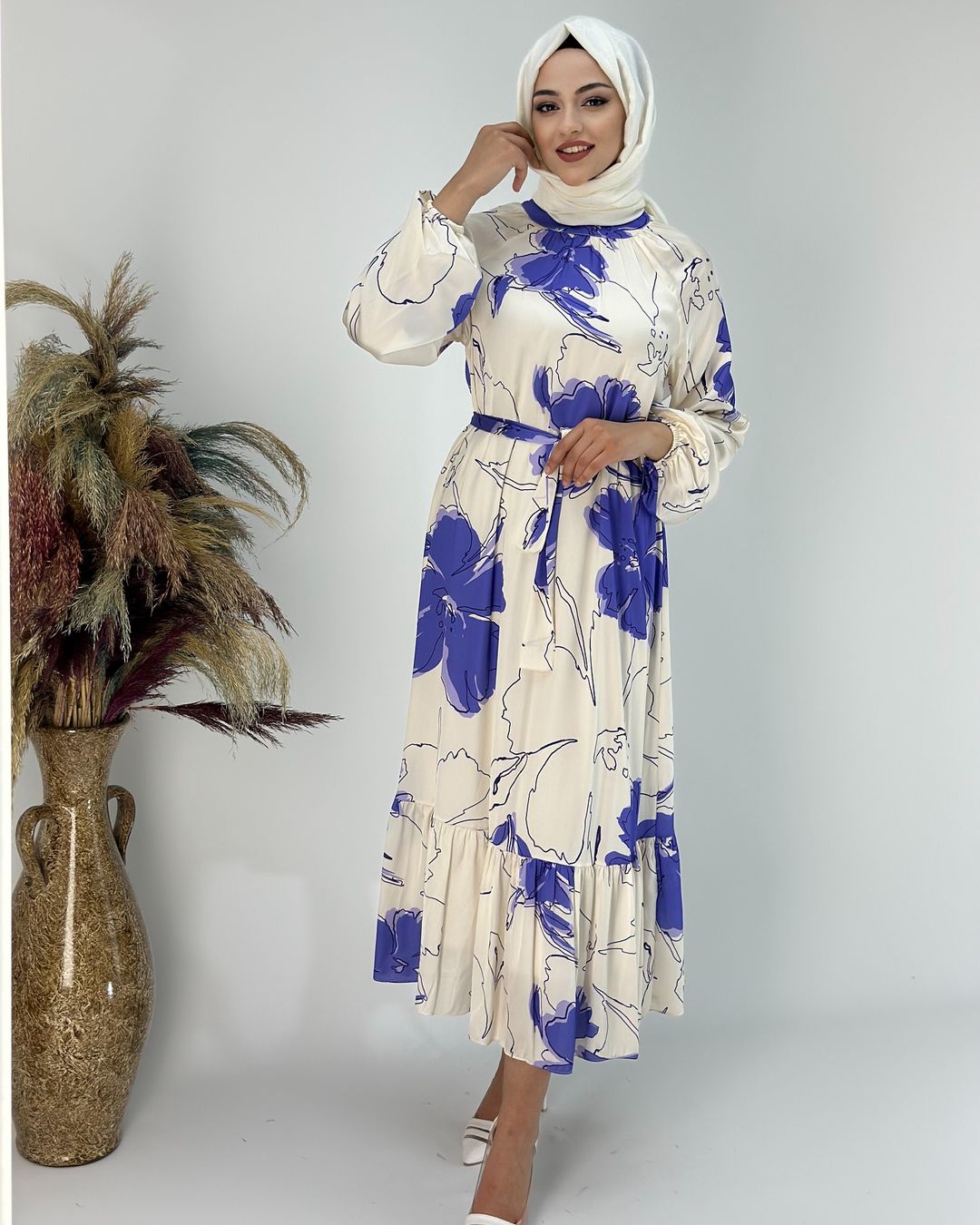 Saten Baskılı Elbise, 36/38/40/42/44 Bedenleri mevcuttur, 135cm boy uzunluğu vardır.