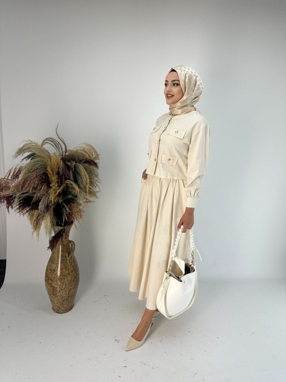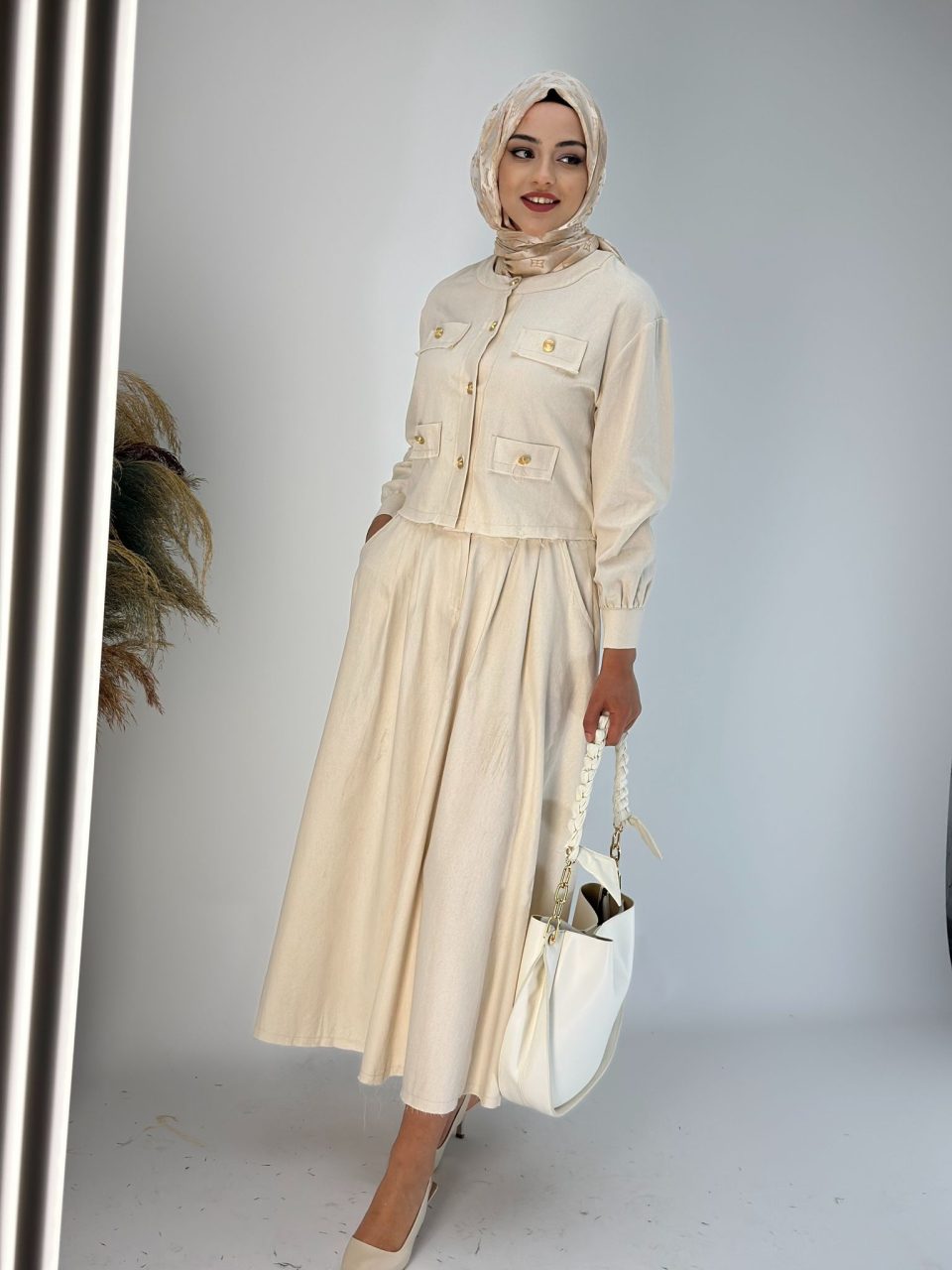 Ne çok kalın ne de ince kumaşlarla hazırlanan mevsimlik takım tesettür modelleri, serin havalarda stilinizi tamamlamak için ideal tercihler arasında yer alır. İlkbahar ve sonbahar kombinlerine zarif bir dokunuş katar.