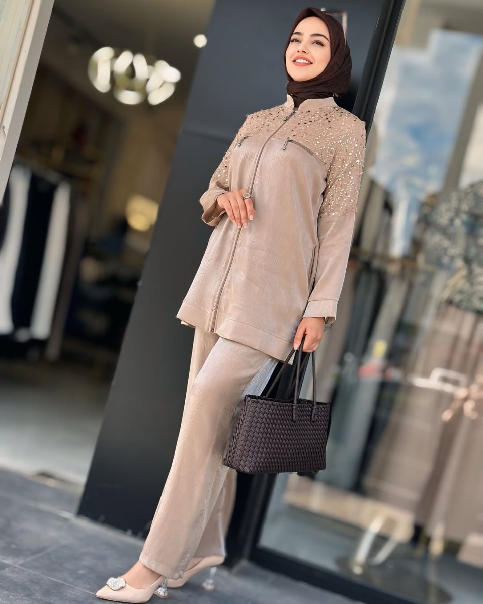 Modern tasarımlarla şekillenen ikili takım tesettür modelleri, kapalı kadınların stilini tamamlarken gün boyu rahatlık sunar. Hem klasik hem de spor tarzda tasarlanan modeller, iş yaşamından sosyal etkinliklere kadar her ortama uyum sağlar.