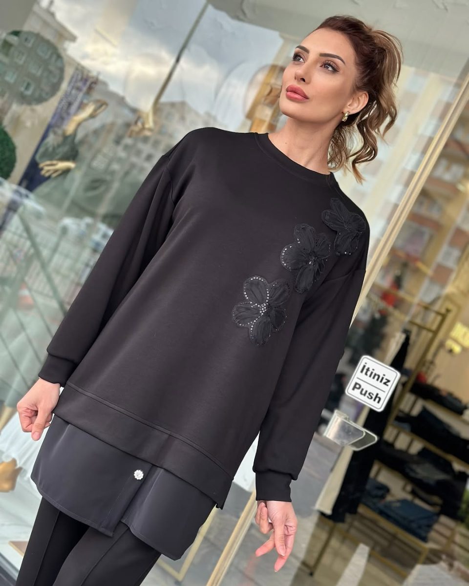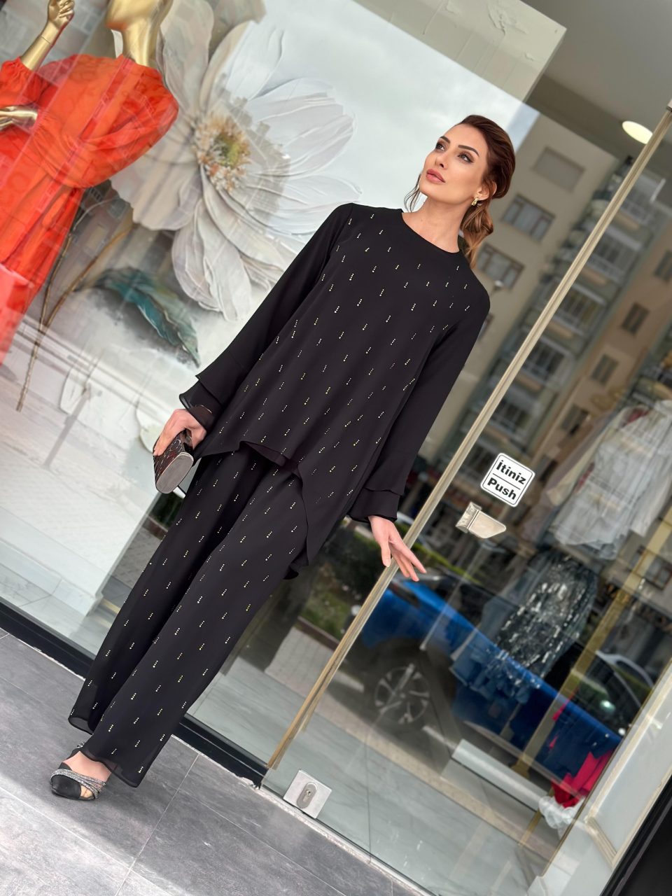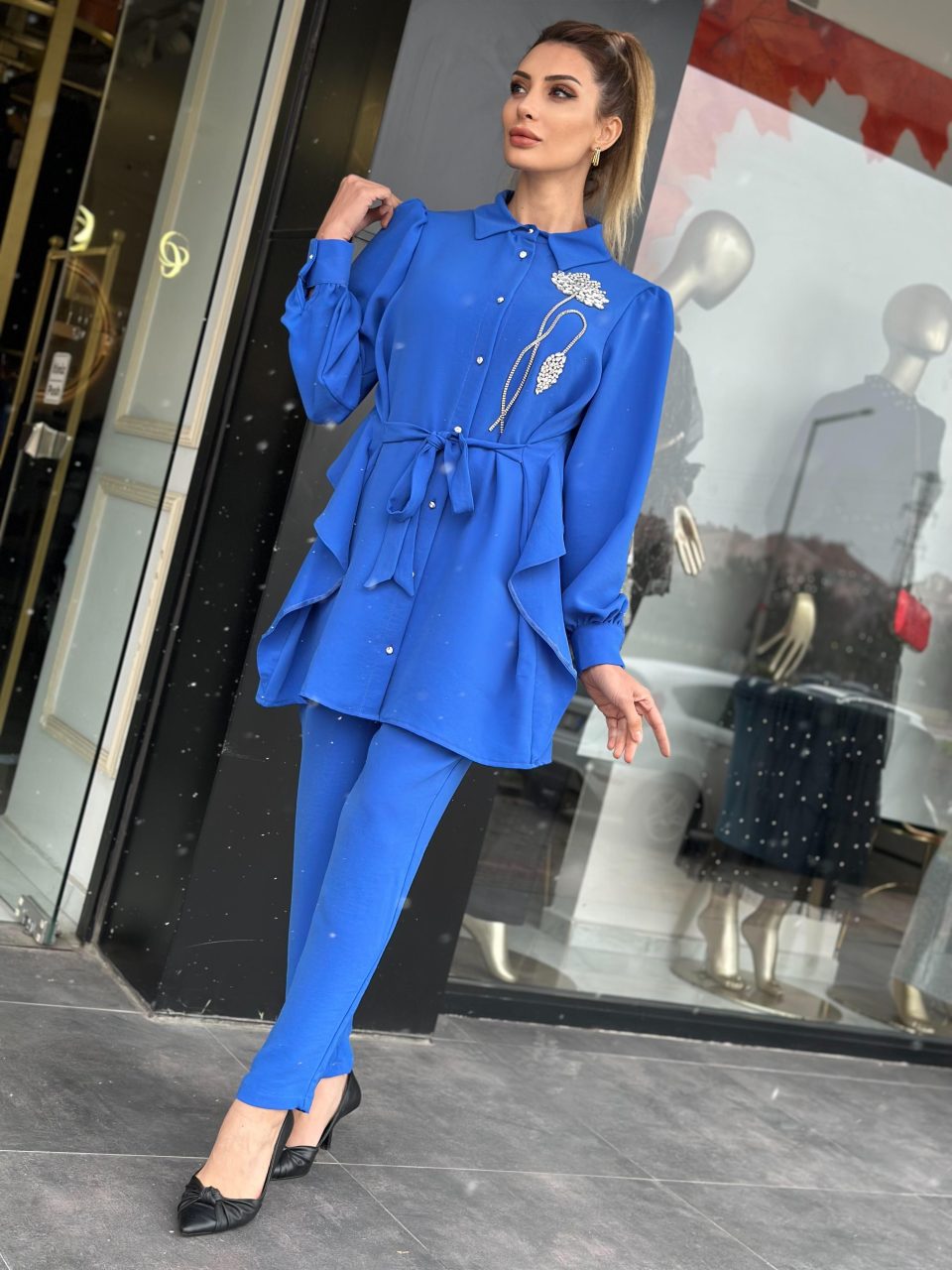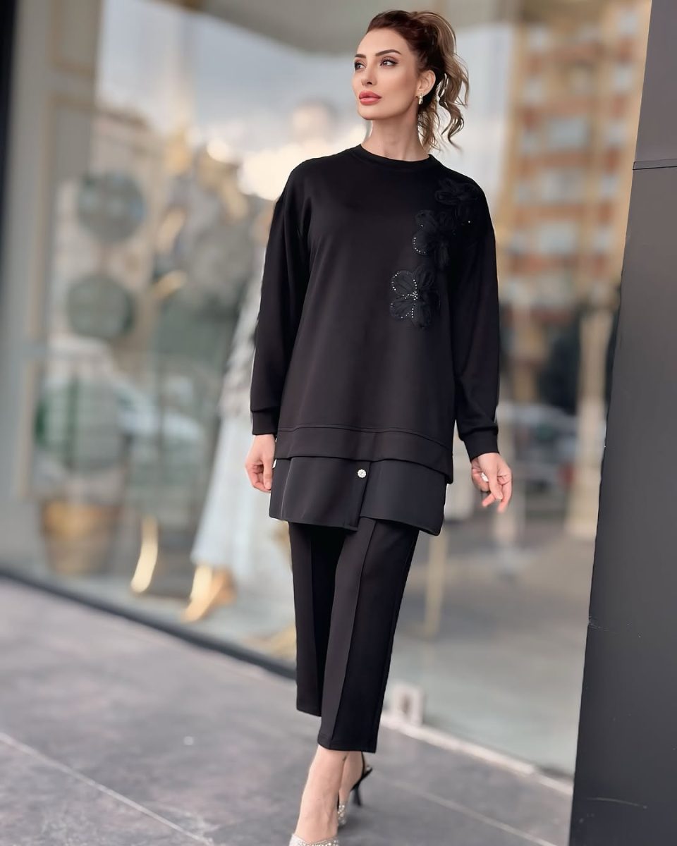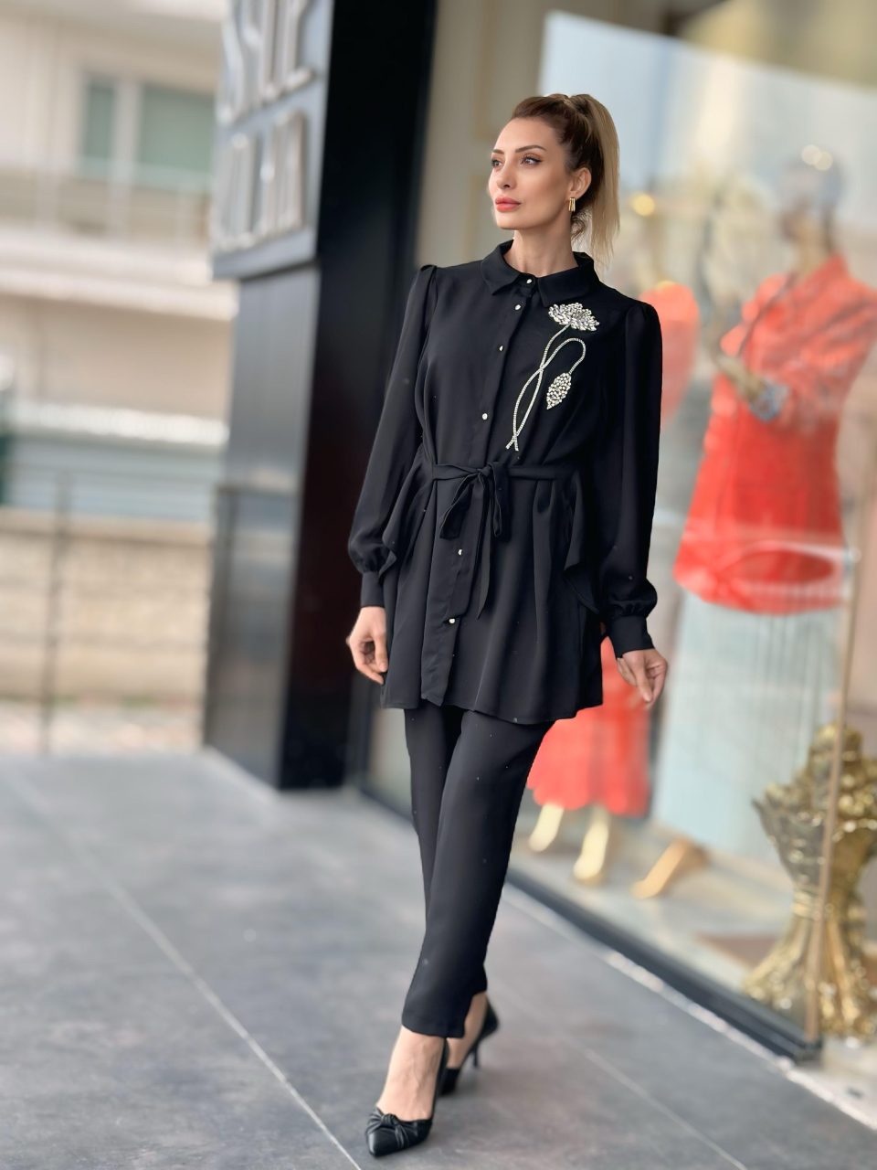Şık bir tunik ile kombinlenen pantolonlu takım modelleri, hem ofis stilinde hem de günlük hayatta tercih edilen modern görünümler oluşturur. Yazlık kumaşlarla tasarlanan modeller nefes alırken, kalın dokulu seçenekler kış aylarında sıcak tutar.