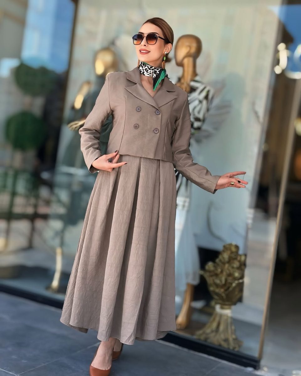 Daha klasik ve feminen bir duruş arayanlar için etekli takım modelleri zarif bir seçenek sunar. Özel günlerde veya şık davetlerde konforla şıklığı bir arada yaşamak isteyen kadınların tercihi olur.