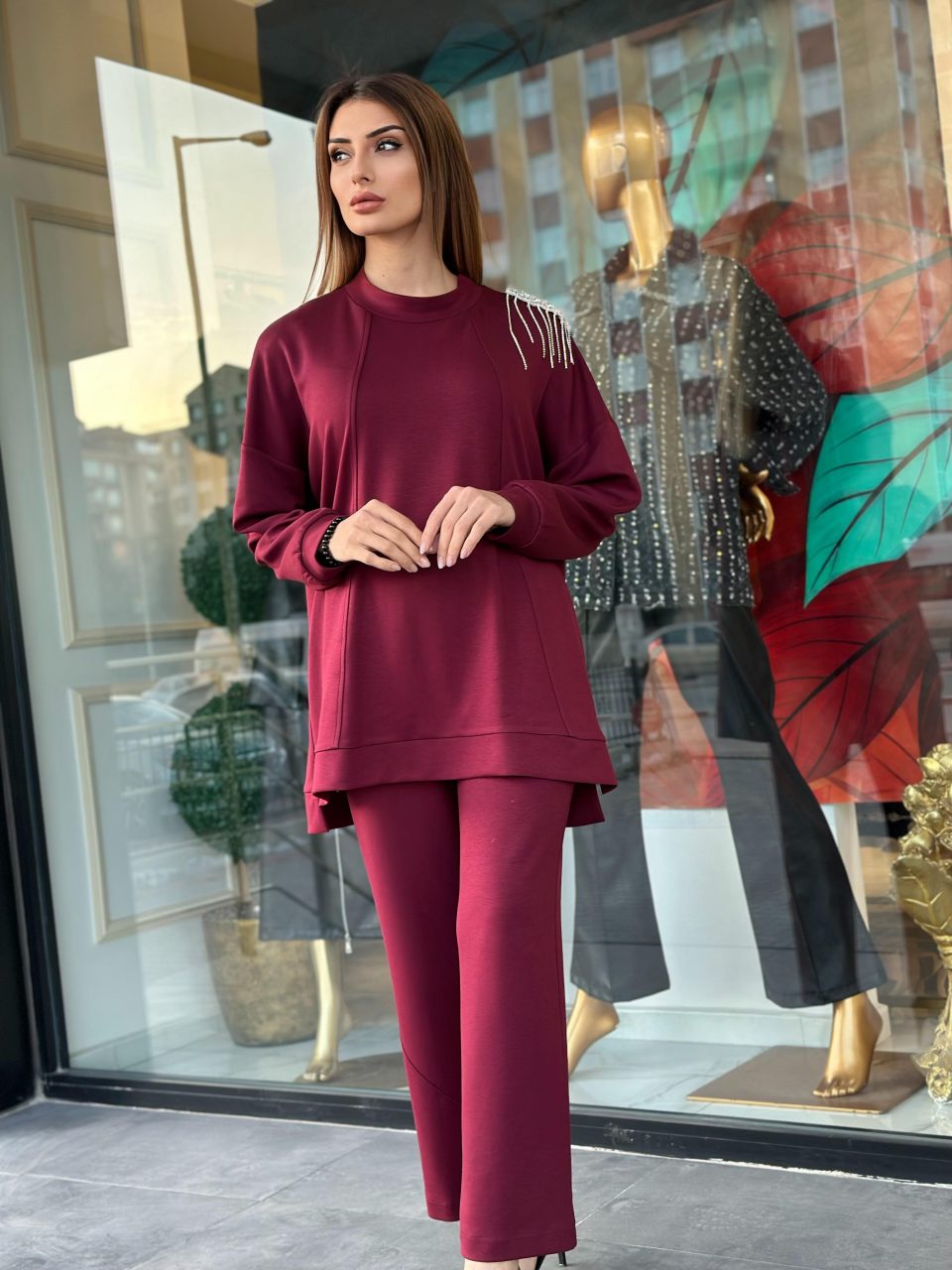 Şık bir tunik ile kombinlenen pantolonlu takım modelleri, hem ofis stilinde hem de günlük hayatta tercih edilen modern görünümler oluşturur. Yazlık kumaşlarla tasarlanan modeller nefes alırken, kalın dokulu seçenekler kış aylarında sıcak tutar.