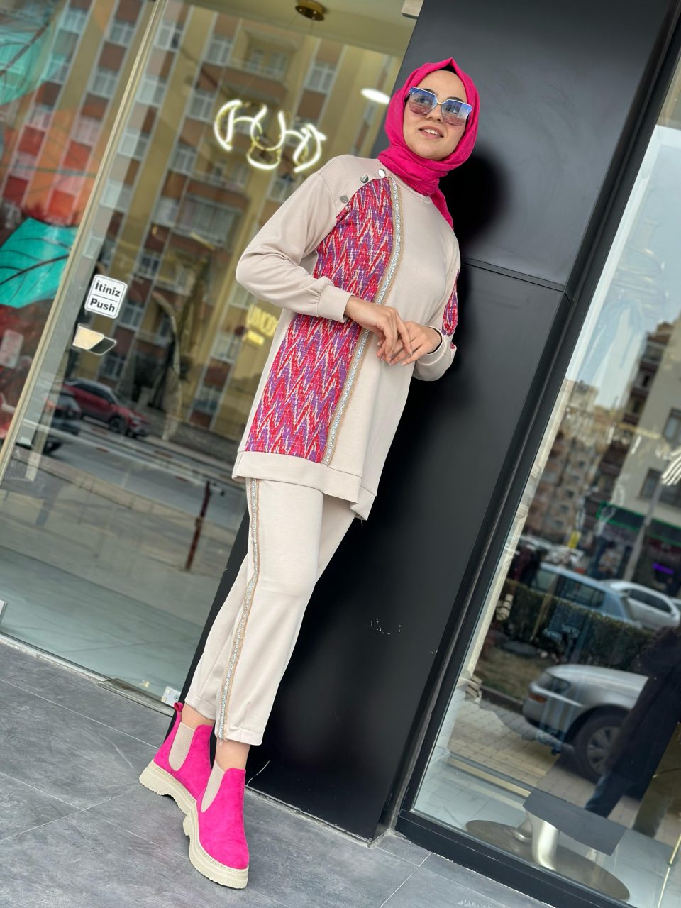 Modern tasarımlarla şekillenen ikili takım tesettür modelleri, kapalı kadınların stilini tamamlarken gün boyu rahatlık sunar. Hem klasik hem de spor tarzda tasarlanan modeller, iş yaşamından sosyal etkinliklere kadar her ortama uyum sağlar.