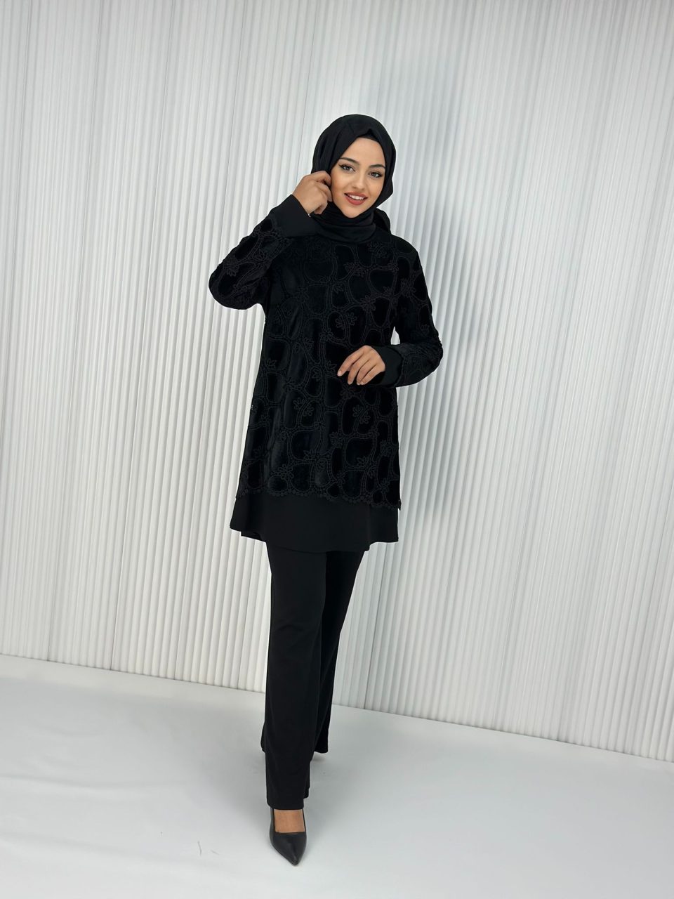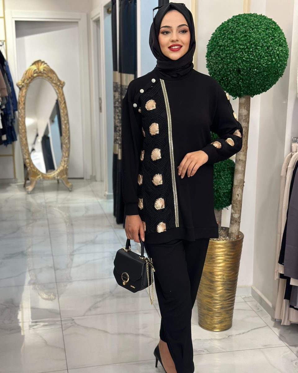 Şık bir tunik ile kombinlenen pantolonlu takım modelleri, hem ofis stilinde hem de günlük hayatta tercih edilen modern görünümler oluşturur. Yazlık kumaşlarla tasarlanan modeller nefes alırken, kalın dokulu seçenekler kış aylarında sıcak tutar.
