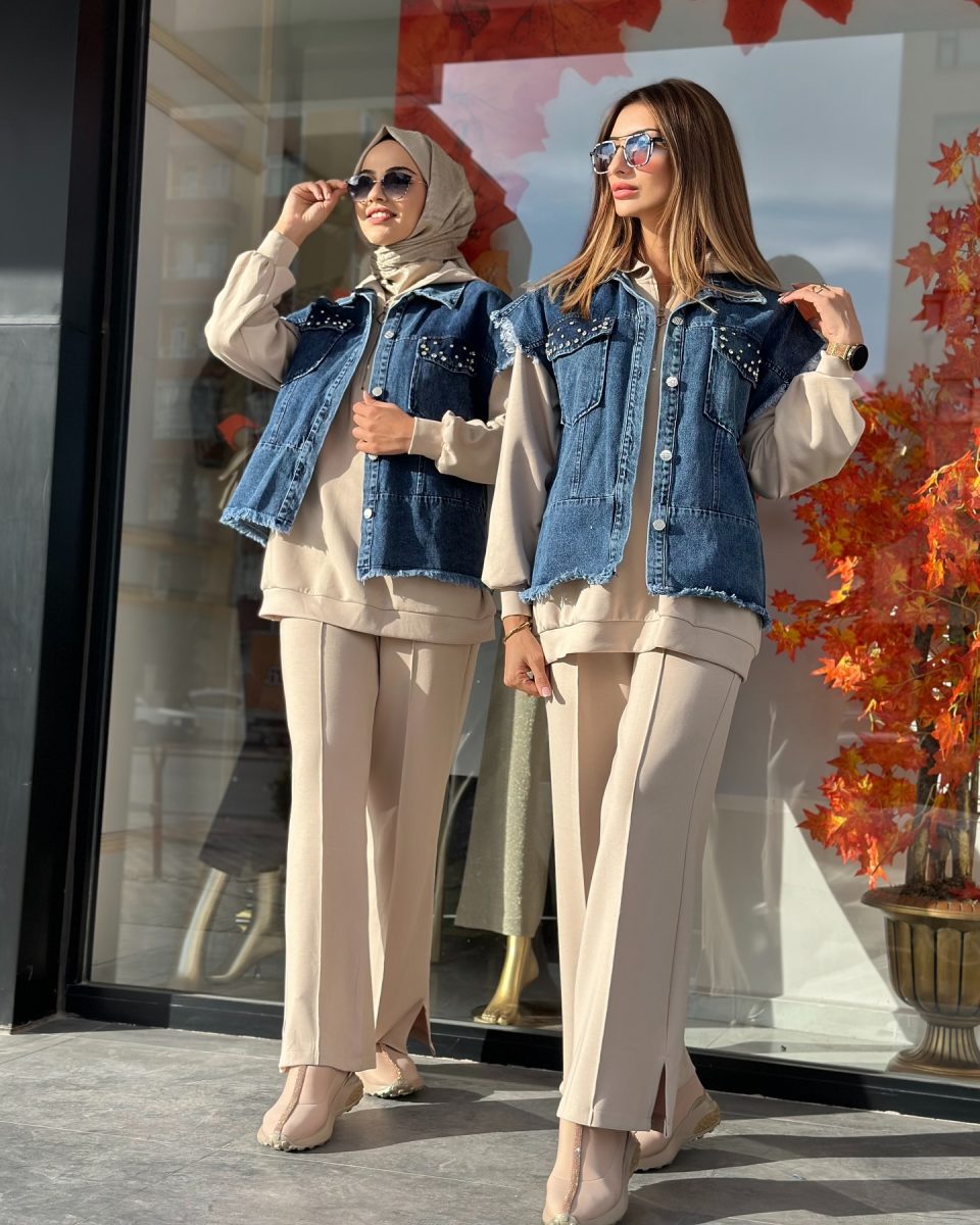 Modern tasarımlarla şekillenen ikili takım tesettür modelleri, kapalı kadınların stilini tamamlarken gün boyu rahatlık sunar. Hem klasik hem de spor tarzda tasarlanan modeller, iş yaşamından sosyal etkinliklere kadar her ortama uyum sağlar.