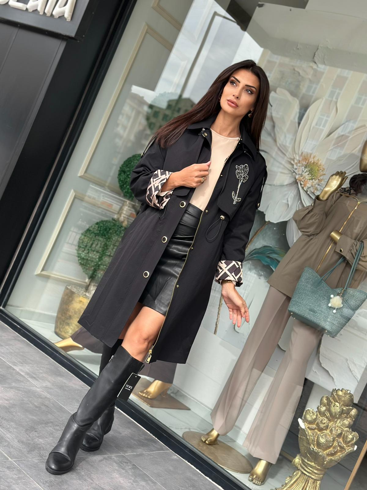 Tasarım Trenç – Bordo / Siyah Renkleri olup, 1 Beden(38-40) ve 2 Beden(42-44-46) Bedenleri mevcuttur. Çıkarılabilir çıtçıtlı kapüşonu mevcuttur.