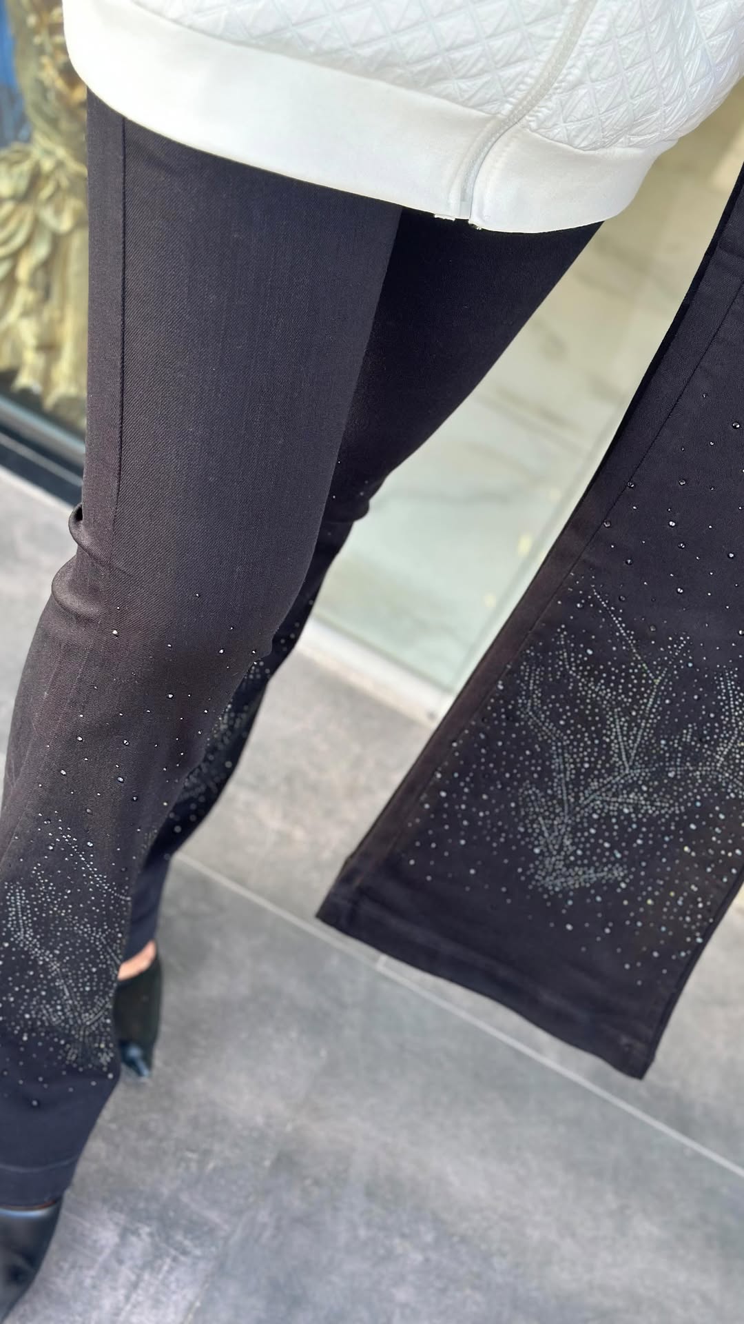Taşlı Full Likra İspanyol Kot – Siyah
