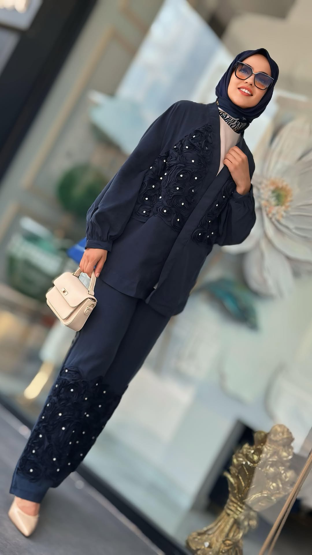 Tensel Takım – Hardal / Lacivert Renkleri olup, Kimono Standart Beden Olup, 36/38/40/42/44 Bedenlere uyumludur. Pantolon Bedenlidir, 36/38/40/42/44 Bedenleri mevcuttur.