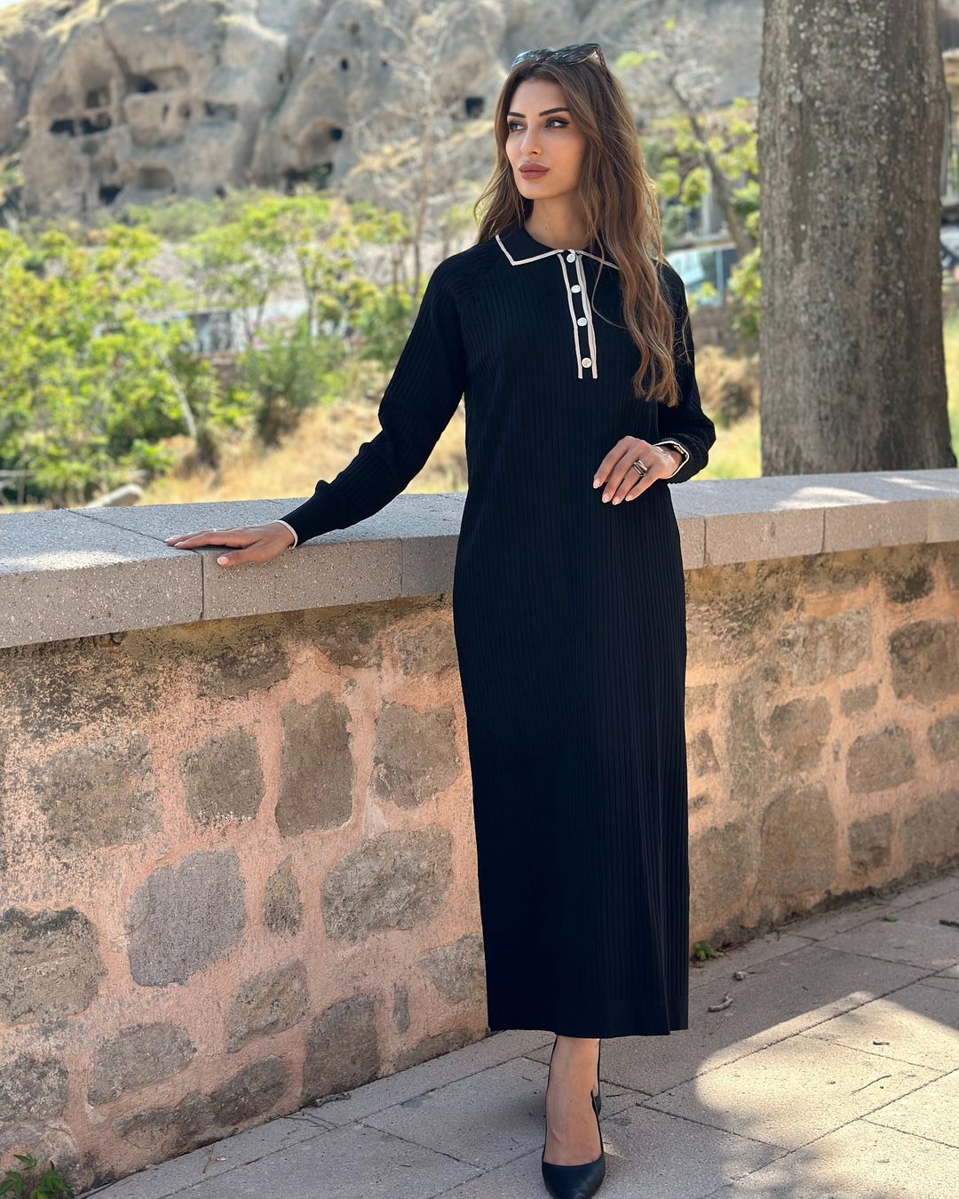 Triko Siyah Elbise, 1 Beden (38/40), 2 Beden (42/44) Bedenleri mevcuttur. 135cm boy uzunluğu vardır.